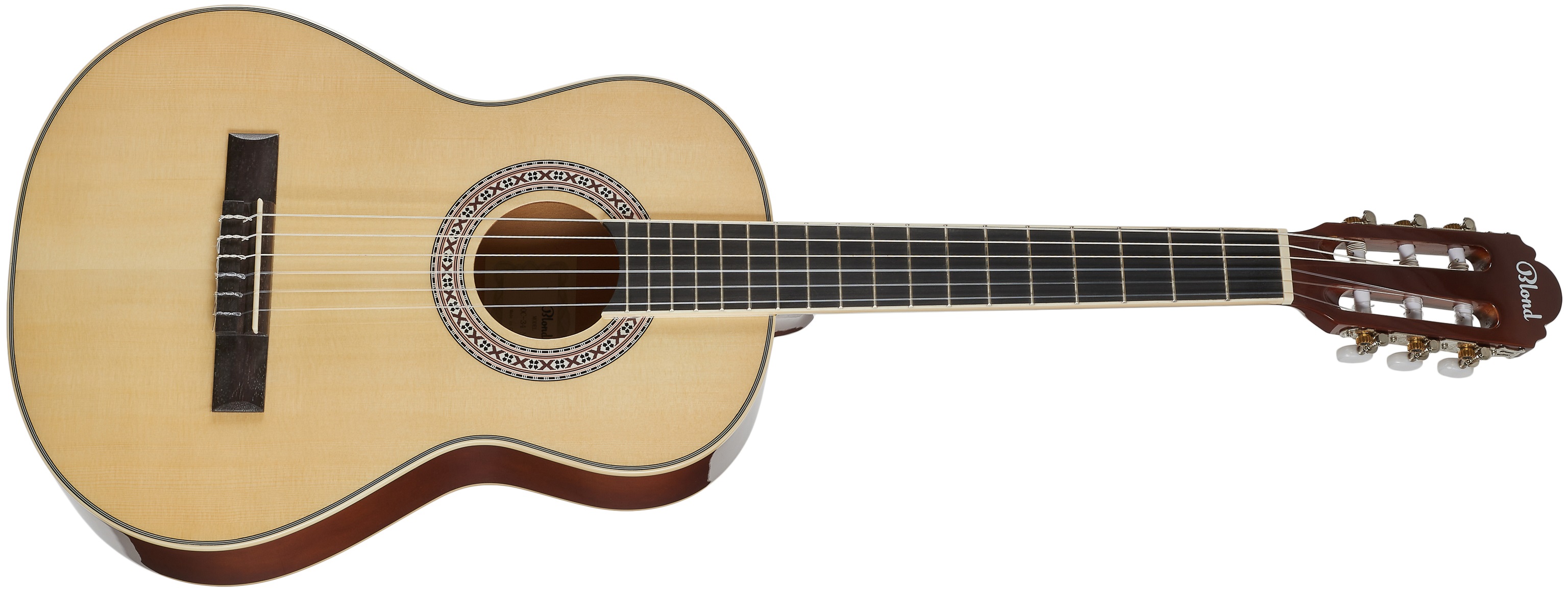 Dětská klasická kytara Klasické kytary značky Blond jsou cenově dostupné nástroje vhodné pro začínající hudebníky. S jejich pomocí si osvojí základní techniky a dovednosti, navíc za cenu, která nijak nezatíží rodinný rozpočet. Dětská klasická kytara Blond OC-34 NAT v 3/4 velikosti nabízí tělo zhotovené z vrstveného smrku a lípy, krk ze dřeva okoumé a hmatník a kobylku z moderního kompozitního materiálu. Struny jsou přes plastový nultý pražec uchyceny v klasických chromovaný