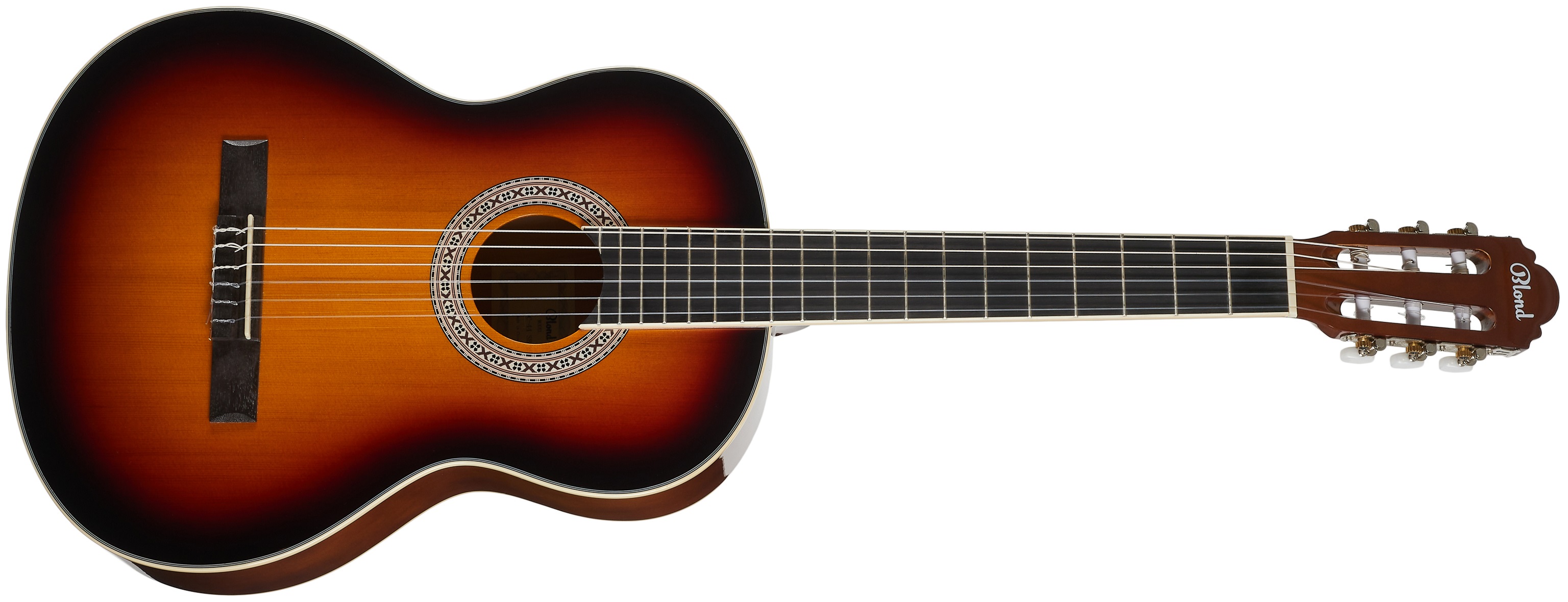Klasická kytara Klasické kytary značky Blond jsou cenově dostupné nástroje vhodné pro začínající hudebníky. S jejich pomocí si osvojí základní techniky a dovednosti, navíc za cenu, která nijak nezatíží rodinný rozpočet. Klasická kytara Blond OC-44 SB v 4/4 velikosti nabízí tělo zhotovené z vrstveného smrku a lípy, krk ze dřeva okoumé a hmatník a kobylku z moderního kompozitního materiálu. Struny jsou přes plastový nultý pražec uchyceny v klasických chromovaných mechanikách
