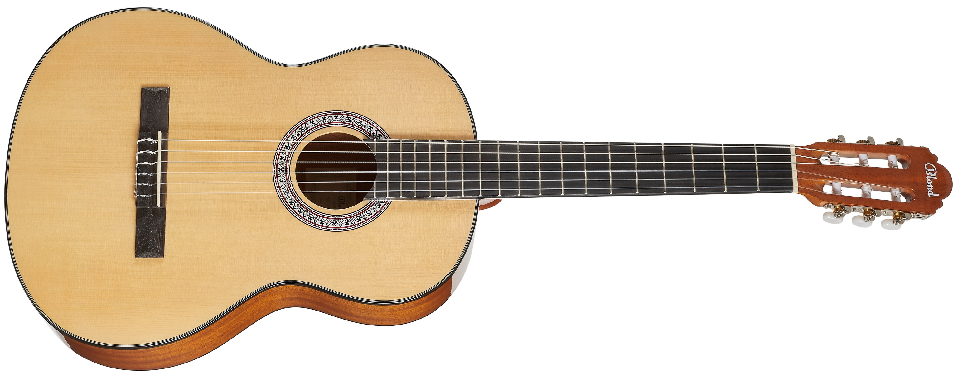 Klasická kytara Klasické kytary značky Blond jsou cenově dostupné nástroje vhodné pro začínající hudebníky. S jejich pomocí si osvojí základní techniky a dovednosti, navíc za cenu, která nijak nezatíží rodinný rozpočet. Klasická kytara Blond SC-44 M NAT v 4/4 velikosti nabízí tělo zhotovené z vrstveného smrku a mahagonu, mahagonový krk a hmatník a kobylku z moderního kompozitního materiálu. Struny jsou přes plastový nultý pražec uchyceny v klasických chromovaných mechanikác