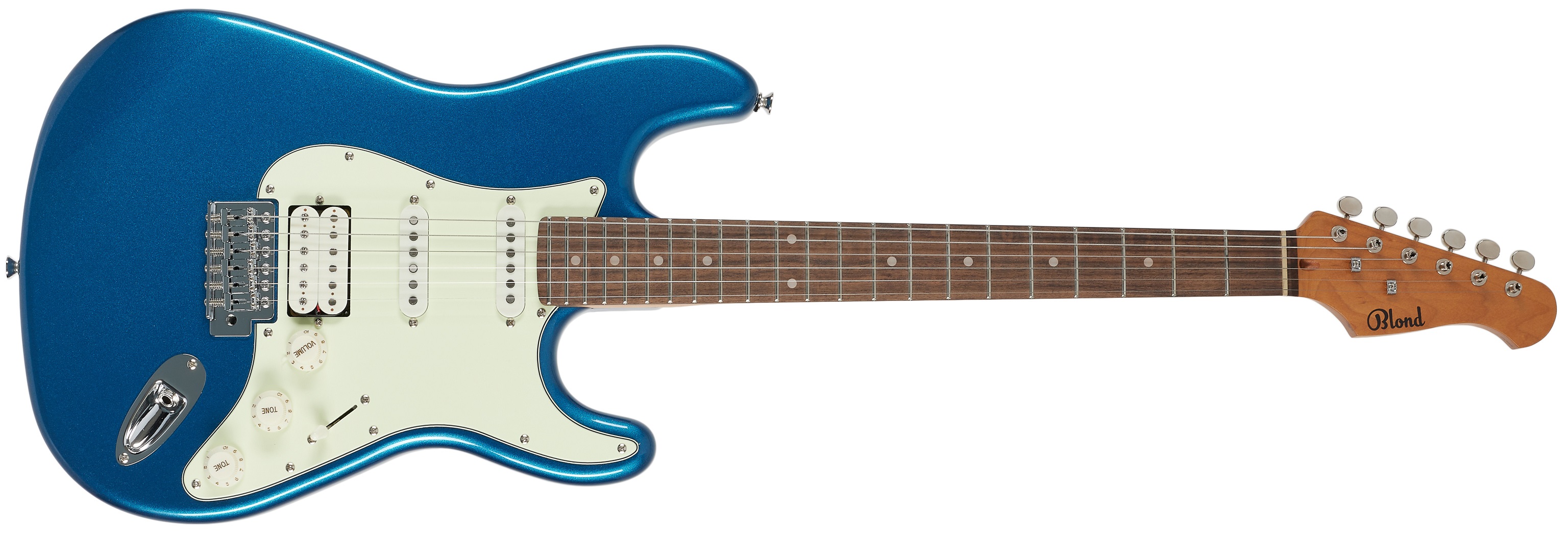 Elektrická kytara Elektrická kytara Blond STR-2H LPB z řady Standard Series představuje ideální volbu pro začínající rockery a rockerky. Jedná se o nástroj s tradičním ST tvarem a všemi náležitostmi, které si s tímto typem kytary spojíte - od snímačů přes synchronizované tremolo po pickguard. Tělo kytary je zhotoveno z lípy. K javorovému krku je přilepen hmatník z fíkovníku osazený dvaadvaceti pražci. Díky tepelné úpravě krku (caramelized maple) je dřevo stabilnější a zároveň získá příjemně