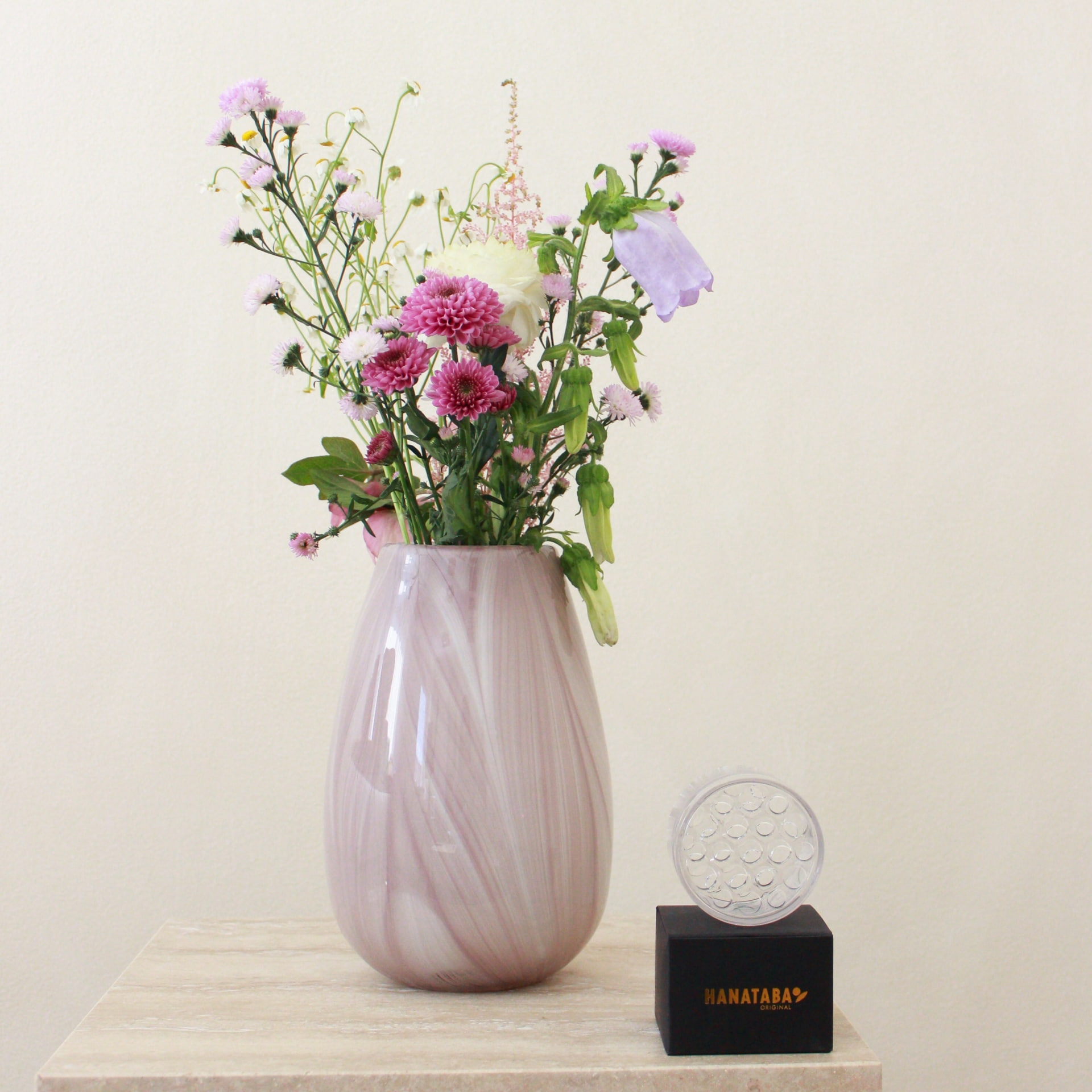 - Skleněná váza Ennis Rose 24,5 cm – jemný tvar a růžové žíhání pro romantickou květinovou kompozici.