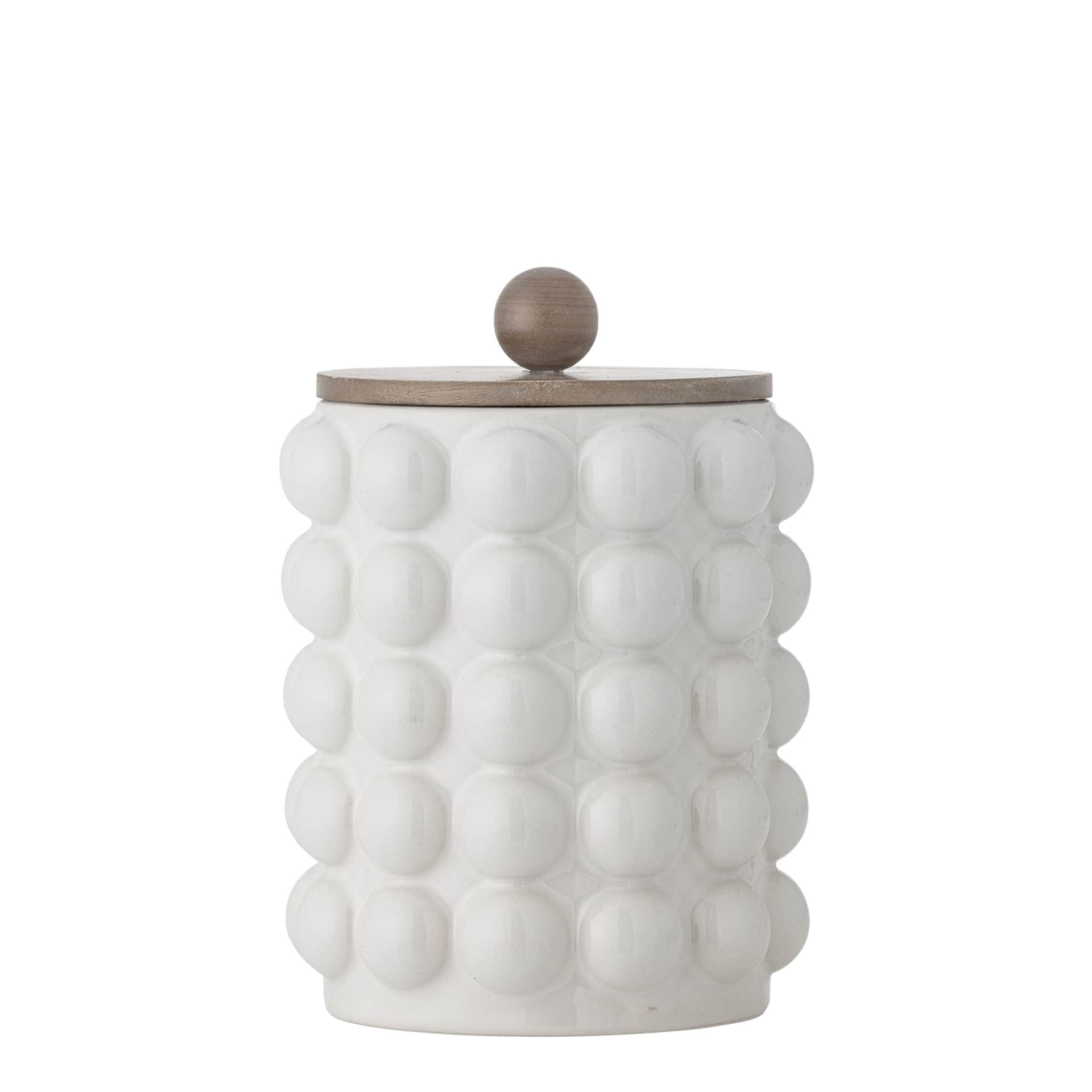 Bloomingville Keramická dóza Madge White 1300 ml, bílá barva, keramika. Krásným kouskem ve vaší kuchyňské výbavě bude tato keramická dóza od dánské značky Bloomingville. Na první pohled zaujme bublinkovým designem, díky kterému si ji budete chtít vystavit na viditelné místo v kuchyni.