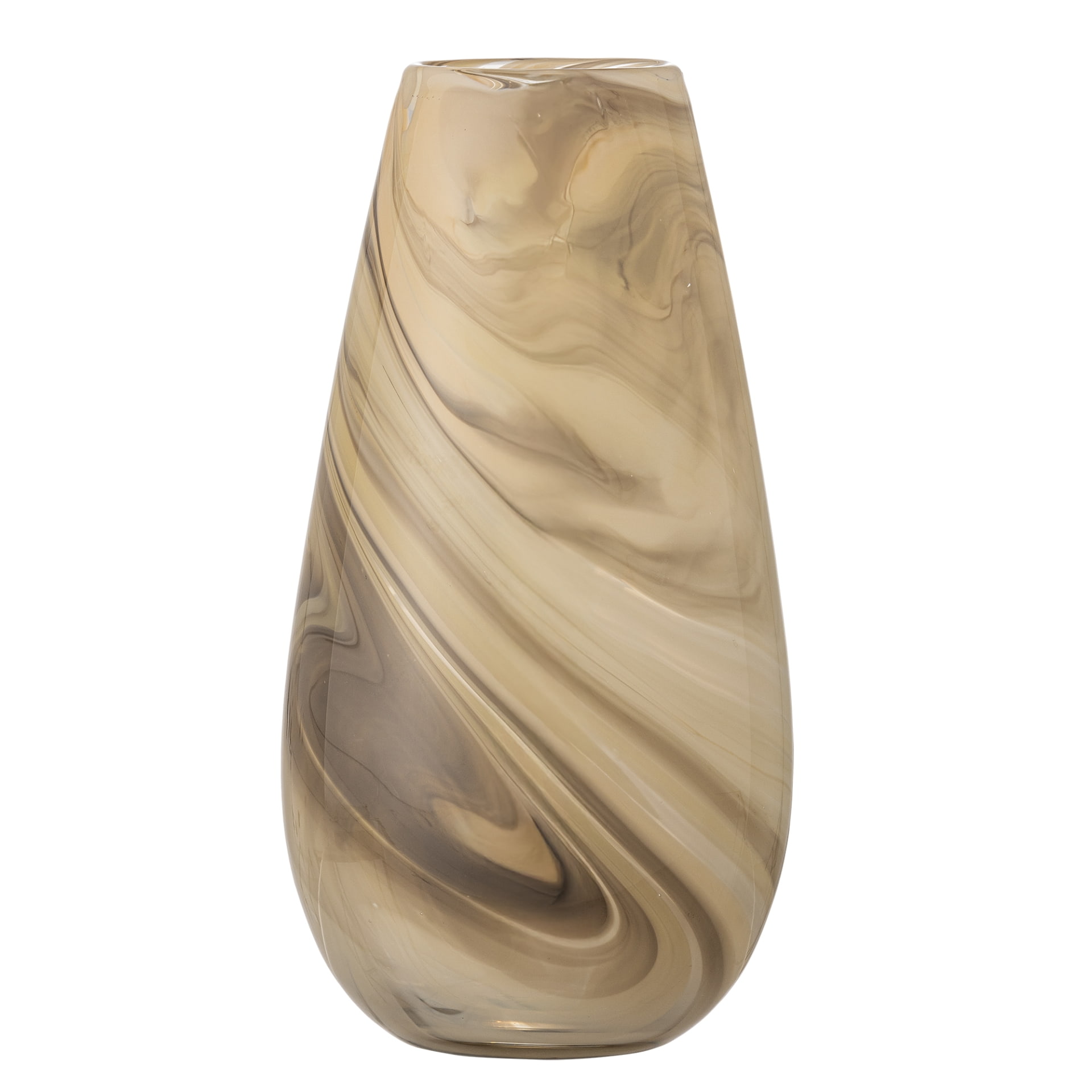 Čistý, tradiční tvar ozvláštňuje nádherné žíhání ve skle v odstínech hnědé barvy. Vynikne s kontrastně barevnými květy, ale také s větvičkou eukalyptu, barborky nebo s kočičkami.