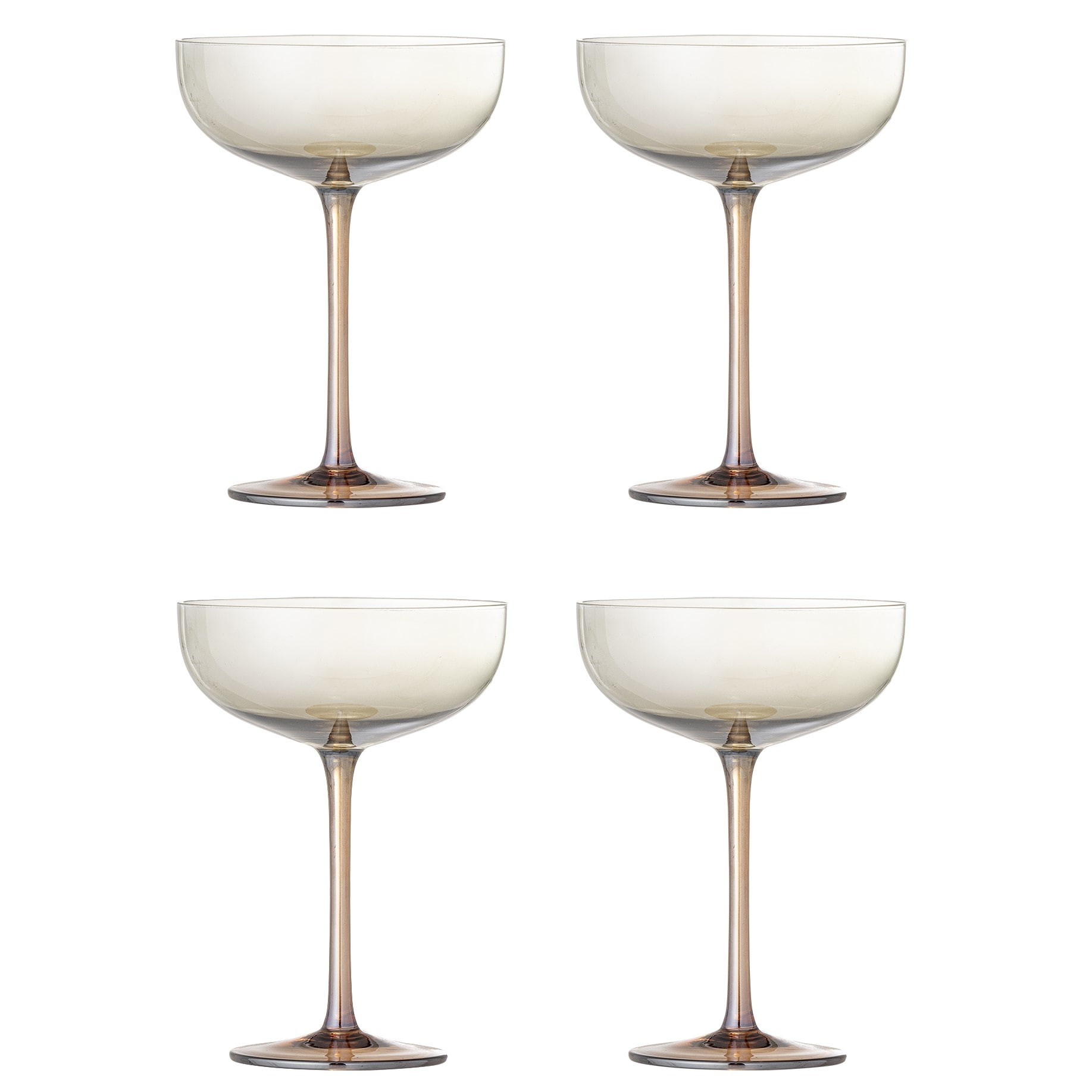 Bloomingville Skleničky Aston Coctail 325 ml – set 4 ks, hnědá barva, sklo. Skleniček není nikdy dost – a ty opravdu krásné si zaslouží své místo na očích. Set čtyř designových skleniček Aston Coctail od dánské značky Bloomingville vnese na váš stůl nádech skandinávské jednoduchosti a elegance. Jemný bronzově-jantarový odstín na stopce v kombinaci se světle zelenou skleničkou působí hřejivě a dodává každému stolování útulnou atmosféru.