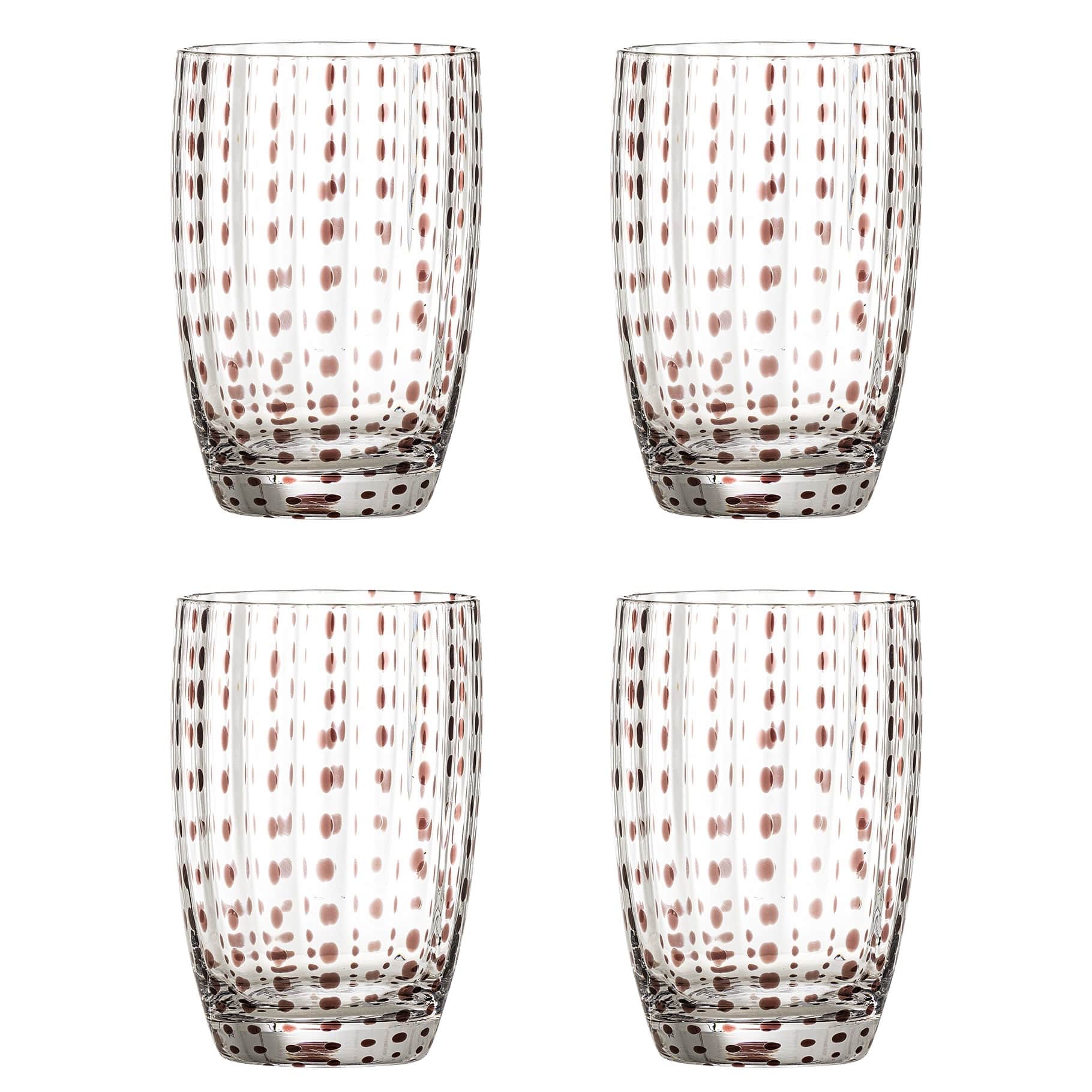 Vyšší skleničky s hnědými puntíky budou jako stvořené pro letní drinky nebo ranní čerstvé ovocné šťávy. Jsou balené po čtyřech kusech, budou tedy i ideální jako dárek pro někoho, kdo si rád zdobí svůj domov neobyčejnými kousky. objem 350 ml / průměr 7,5 cm / výška 11 cm Vyrobeno ze skla.