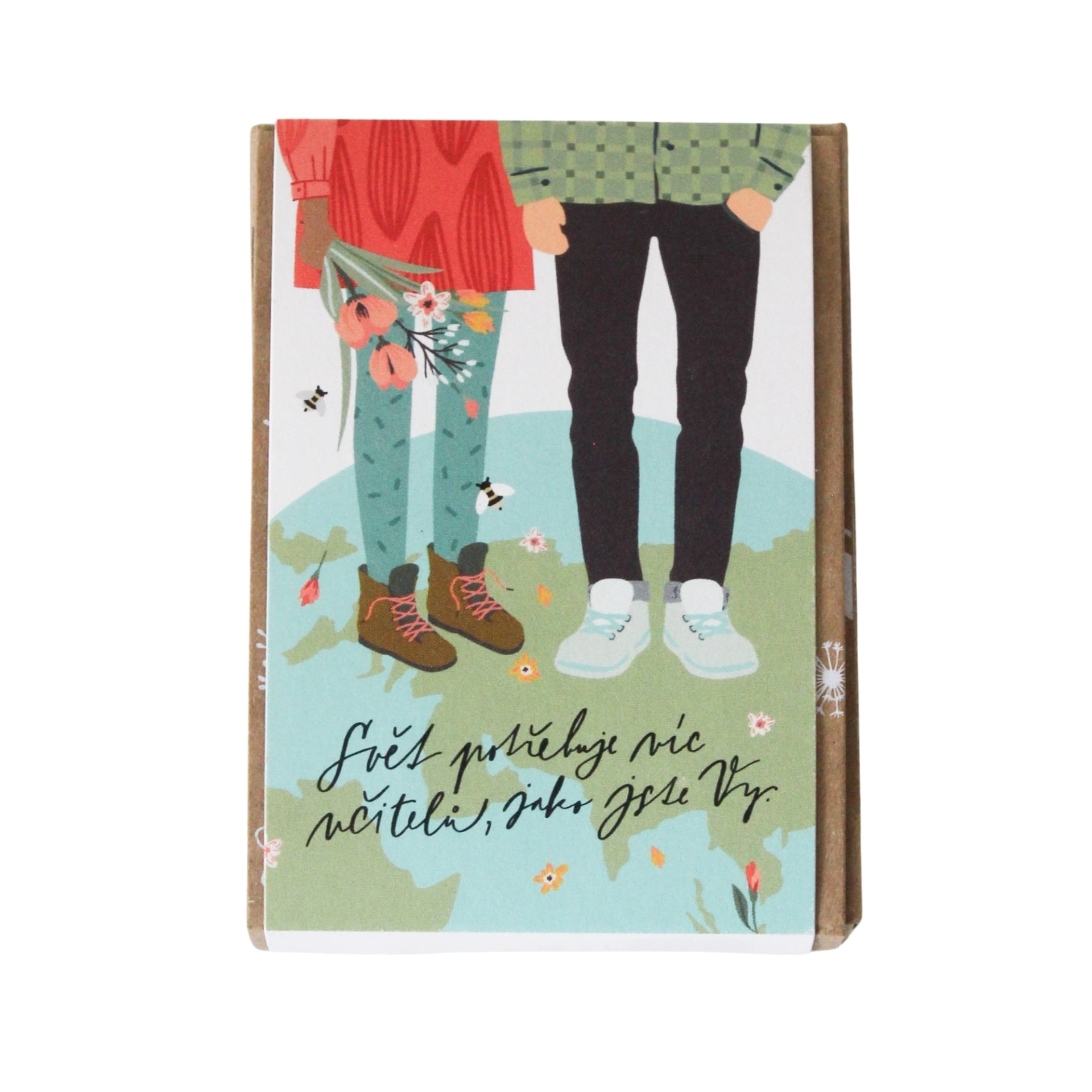 Stručný nápis „Svět potřebuje víc učitelů, jako jste Vy“ je laskavou zpětnou vazbou a upřímným uznáním, které učitele pohladí po duši, stejně tak jako krásné luční kvítí, co po jeho zasazení vyroste. To bude dělat radost jak učiteli, tak včelkám a motýlům, pro které je luční kvítí přirozeným prostředím.