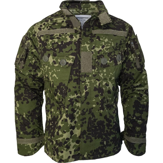 Blůza speciálních jednotek Profesionální polní blůza německých speciálních jednotek vyráběná německou firmou Tacgear. Je zhotovena z odolného směsového materiálu se zpevňující protizátrhovou osnovou RipStop. Dvě náprsní kapsy společně s kapsami umístěnými v horní části rukávů poskytují dostatečný úložný prostor. Blůza se vyznačuje zvýšenou ochranou loktů - v této partii jsou zhotoveny kapsy s vyjímatelnými pryžovými panely (osvědčí se například při střelbě v lehu). Na blůze je našito několik panelů stuhových uzávěrů pro umístění nášivek. Obvod manžety rukávu lze nastavit. - štěrbinové knoflíky - kvalitní zdrhovadla YKK - kvalitní stuhové uzávěry YKK - 2 šikmo umístěné náprsní kapsy s úchyty D-Ring - 2 kapsy na rukávech se stuhovými uzávěry - 2 x stuhový uzávěr pro jmenovku - 1 x stuhový uzávěr pro hodnost - 1 x stuhový uzávěr na krku pro krevní skupinu atp. - zpevnění loketních partií pomocí vyjímatelných panelů - zapínání u krku suchým uzávěrem - nastavitelný obvod manžety rukávu Materiál: 50 % polyester, 50 % bavlna Rip-Stop (s protizátrhovou osnovou) Hmotnost: 830 g (vel. L)