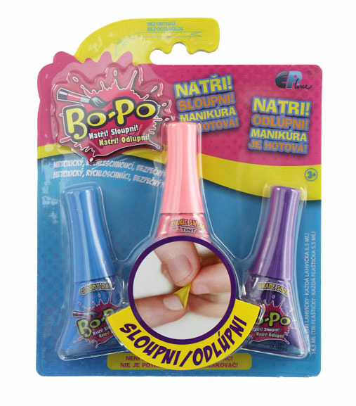 Užijte si krásné nehty se slupovacími laky Bo-Po. Je to vážně jednoché. Už žádný odlakovač. Naneste lak, nechte ho zaschnout. Chcete si užít novou barvu? Lak jednoduše sloupněte. Obsahuje: 3 laky Bo-Po