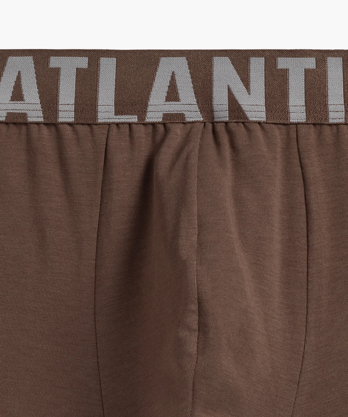 Bokserki męskie, Kolekcja Premium - Bielizna męskaObcisłe bokserki męskie z bawełny pima to gwarancja wygody w najlepszym wydaniu. Bokserki w odcieniu kawy mają sportowy charakter - ich nogawki sięgają do połowy uda, a talia jest nisko zaznaczona i wykończona miękką, połyskującą gumą, na której znajduje się logo Atlantic. Przyjemna w dotyku guma nie uciska ciała. Bokserki wykonane są z delikatnej bawełny pima, lekkiego i jedwabistego mikromodalu oraz rozciągliwego elastanu. Dzianina niczym druga skóra perfekcyjnie dopasowuje się do sylwetki. Ponadto skutecznie wchłania pot i jest idealnym wyborem dla nawet najbardziej wrażliwych odbiorców. Swoich wyjątkowych właściwości nie traci z biegiem czasu. kawowyBRĄZOWY47% modal, 46% bawełna pima, 7% elastan