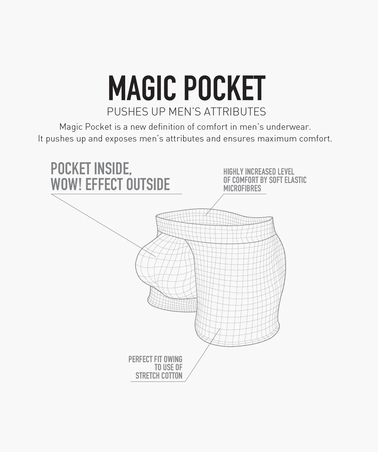 Bokserki męskie Magic Pocket, Kolekcja Classic - Basic - Bielizna męskaPoznaj bokserki Magic Pocket w nowym wydaniu. Majtki o sportowym charakterze odznaczają się krótkimi nogawkami oraz niską talią, wykończoną szeroką gumą zewnętrzną z napisami Atlantic Up MAGIC. Bokserki mają profilujące szwy i koszyk, gdzie mieści się kieszonka, która odpowiada za uniesienie i powiększenie przyrodzenia. Majtki wykonane są z dzianiny cotton stretch, która jest połączeniem przyjemnej w dotyku bawełny i rozciągliwego elastanu. Dzianina jest przyjazna dla skóry, przepuszczająca powietrze i zapobiegająca nadmiernemu poceniu się ciała. Swoje właściwości zachowuje przez długi czas. Spodziewaj się wyjątkowych doznań, perfekcyjnego dopasowania do sylwetki i najwyższego poziomu komfortu.CZARNY95% bawełna, 5% elastan