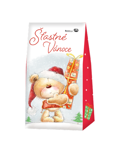 Vánoční bonboniéra s medvídkem a dárkem sedícím pod větvičkou budou krásným milým dárkem. V bonboniéře najdete italské pralinky z mléčné čokolády plněné mléčným krémem Rozměr výrobku: cca 9,50 x 18 x 5,5 cm Složení: cukr, kakaové máslo, sušené plotučné mléko, kakaová hmota, částečně hydrogenované rostlinné oleje a tuky, sušené odstředěné kakao, sušená mléčná syrovátka, emulgátor: sojový lecitin, aroma: vanilin. Obsah kakaa v čokoládě: min. 28%, obsah mléčné sušiny min. 13%.