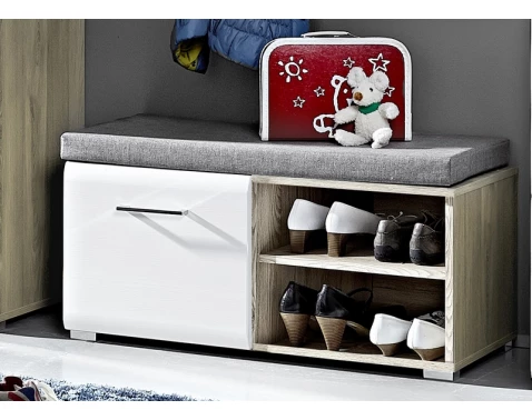 Stylový nábytek ze série Funny v bílém provedení s šedo-béžovými tóny dubového dřevodekoru. Kvalitní zpracování a moderní vzhled, který zaujme.