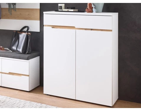 Komoda P11 Barva korpusu: Bílá, Lišta: Dub - sonoma, Barva dvířek: Dub - sonoma