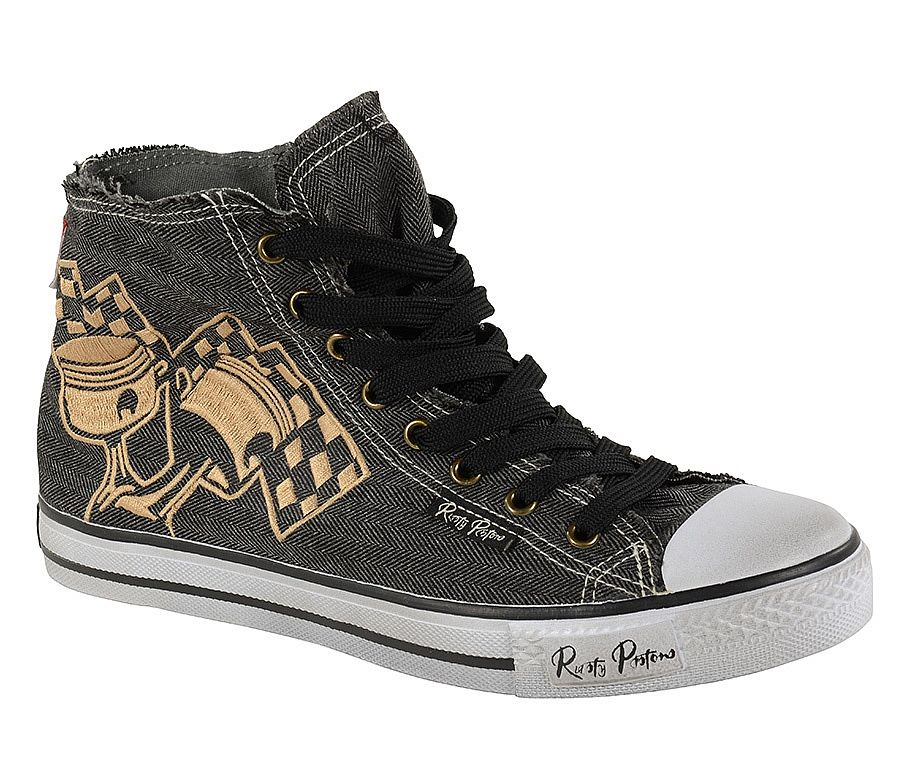 - vyšší plátěné boty - logo Rusty Pistons na zadní straně - výšivka - gumová podrážka skládaná z více vrstev www.rustypistons.eu