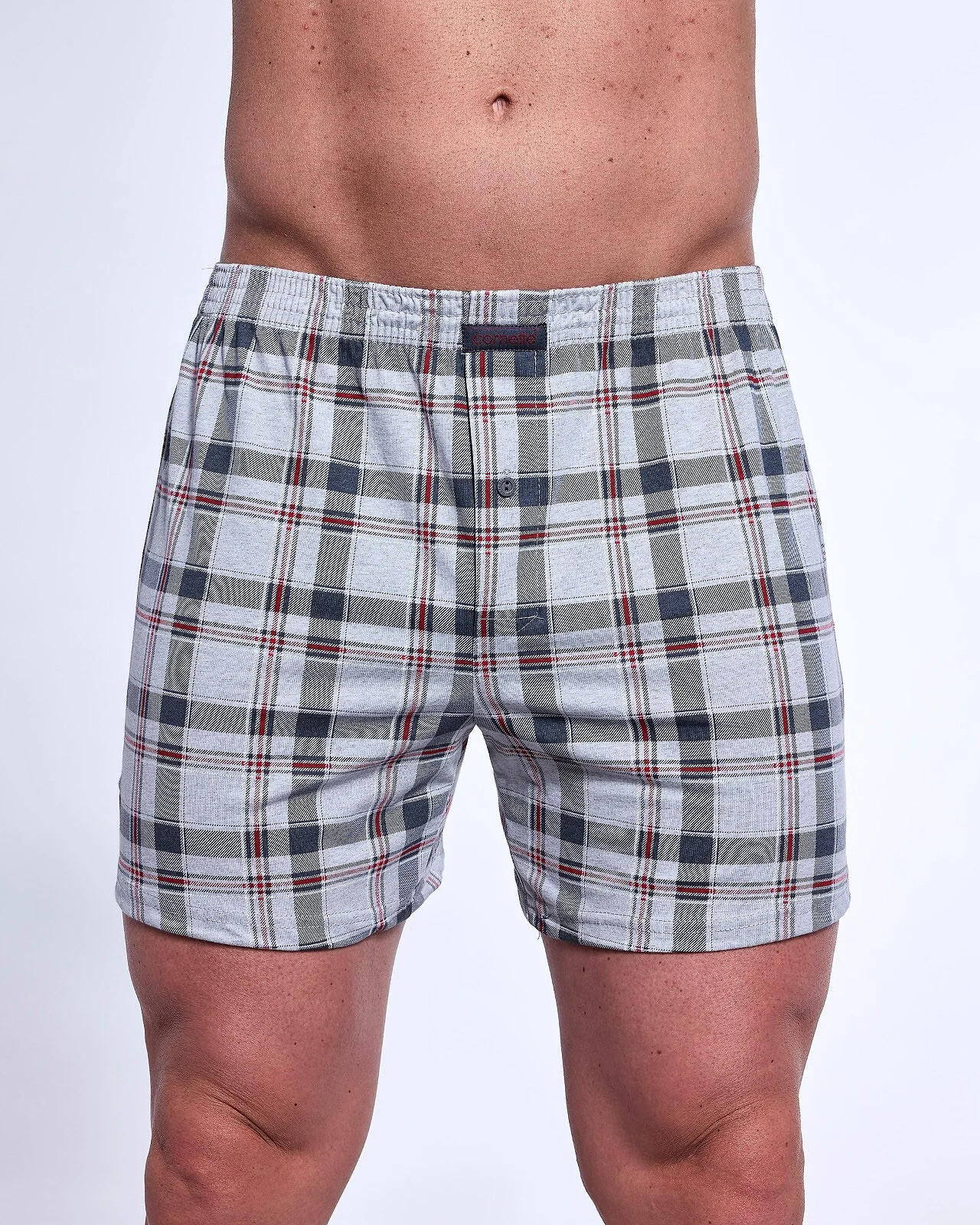 Pánské boxerky - pohodlný, volný střih - vysoce kvalitní bavlna - kostkovaný vzor - zapínání na knoflíky - v pase guma lemovaná bavlnou Složení: 80 % bavlna, 20 % polyester