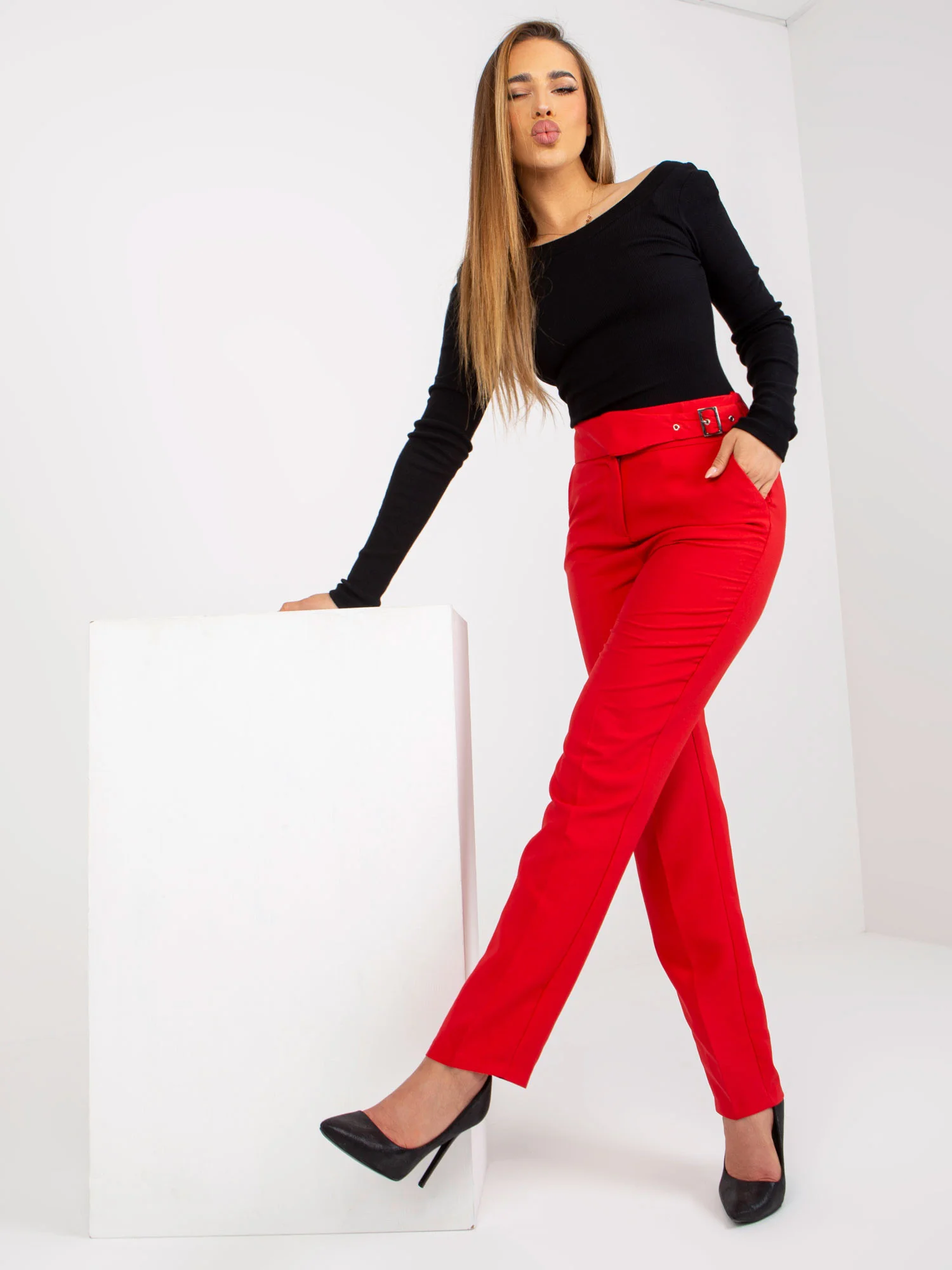 Červené kalhoty z rovné látky s kapsami . doplňky: všitý pásek, boční kapsy Složení materiálu: 65 % polyester, 35 % viskóza. způsob praní: praní v pračce na 30 °C Kód produktu: BR-SP-113.59 dominantní vzor: hladký styl: elegantní příležitost: neformální, pracovní, městský, formální schůzka Modelka má na sobě velikost 36. Rozměry modelky: výška 167 cm, prsa 82 cm, pas 59 cm, boky 83 cm. Rozměry kalhot ve velikosti 36 měřené na plocho: šířka v pase - 38 cm, výška v pase - 30 cm, celková délka - 102 cm.Mezinárodní velikostVýškaObvod pasuObvod bokůVnější délka nohaviceDélka vnitřní nohavice34XS156-16466-7486847336S160-16872-8090877438M162-17278-8694907540L164-17484-90102947642XL166-17888-961069877442XL168-18092-10011010278