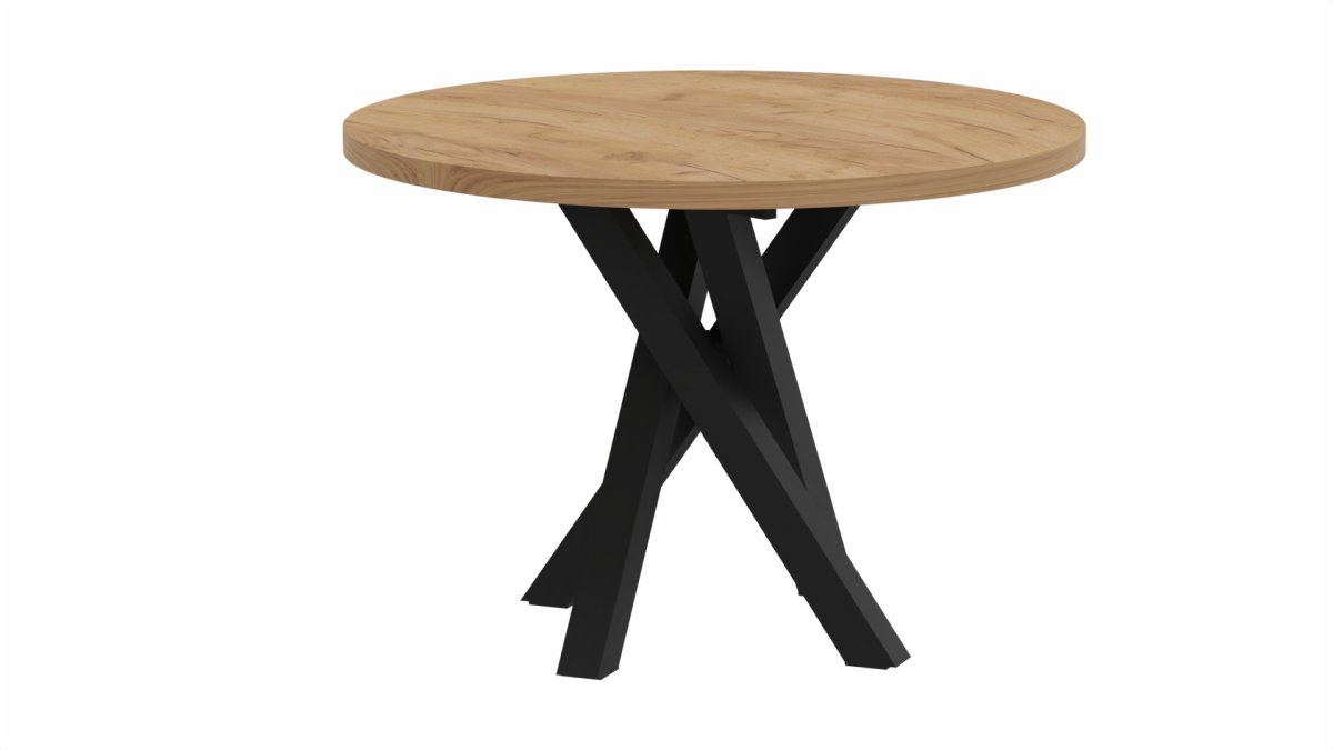 Jídelní stůl SWEN S313 - kulatý je typem klasického kulatého jídelního stolu s moderní kovovou podnoží černé barvy. Stůl je pro jeho širší využití nabízený s rozkladem horní desky, takže velmi jednoduše a rychle získáme jídelní plochu o 40 cm větší. Stůl je možné jednoduše sladit s řadou interiérů, protože je nabízený v 5ti atraktivních dekorech dubů. Stůl vyniká vysokou výrobní kvalitou a také stabilitou. Stůl je vhodný nejen do domácího prostředí kuchyňských koutů nebo obývacích pokojů bytů a rodinných domů, ale také do zátěžových provozů restaurací, kaváren, apartmánů nebo jídelen, aj..