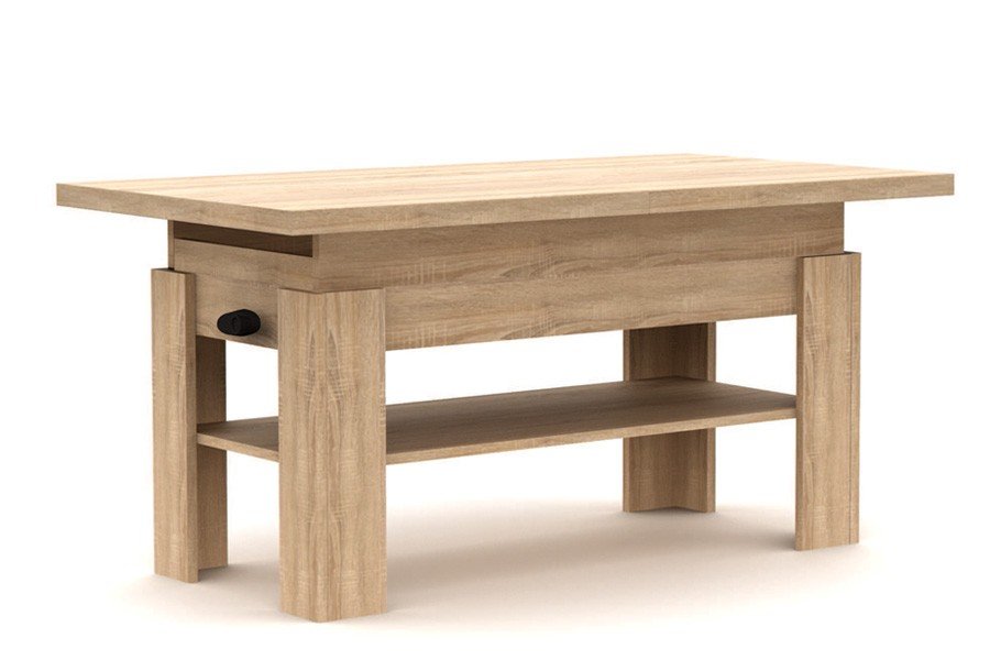 Není-li jen rozklad řešením toho, co od konferenčího stolu očekáváte, ale potřebujete-li mít i možnost měnit výšku odkladové plochy a mít tak většinu dobrot a věcí na stole blíže sobě, tak možná právě tento moderní a na první pohleded technicky vyhlížející stůl poskytne to něco navíc, čím si Vás stůl získá. Konferenční stůl K36 je opatřen pro snadnější manipulaci a výsuv klikovým zvedacím mechanismem - viz. přiložený obrázek. Stabilita stolku je dána tloušťkou použitého materiálu - laminovaná deska tl. 36 a 18 mm. Rozkladem získáme netypicky dlouhý stolek o délce 156 cm. Výškově jej lze nastavit až do 70 cm. Konferenční stolek je tak vhodný pro všechny věkové kategorie a interiéry, ať již klasicky nebo velmi moderně vybavené.