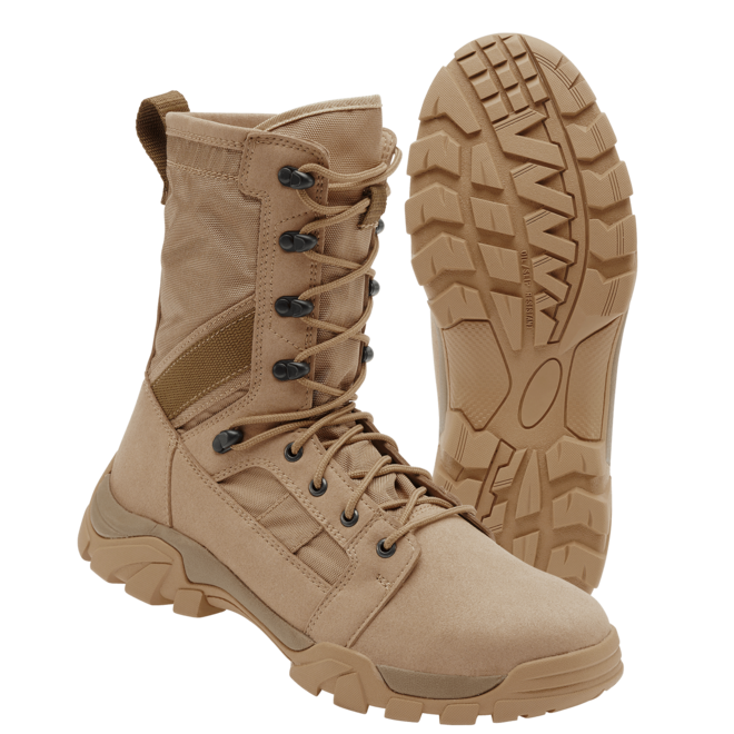 Boty Defence Boty nízké hmotnosti pro všestranné použití. Protiskluzová gumová podrážka zajišťující tlumení nárazů. 9 řad šněrování, kombinace dírek a háčků. Materiál: mikrovlákno + nylon (600D) Hmotnost: 1355 g (vel. 44) Výrobce: Brandit, Německo Kód výrobce: 9048