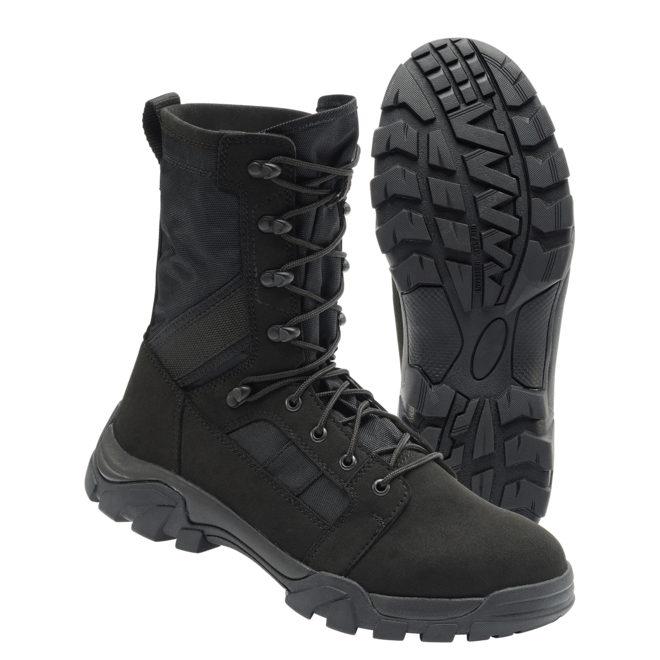 Boty Defence Boty nízké hmotnosti pro všestranné použití. Protiskluzová gumová podrážka zajišťující tlumení nárazů. 9 řad šněrování, kombinace dírek a háčků. Materiál: mikrovlákno + nylon (600D) Hmotnost: 1355 g (vel. 44) Výrobce: Brandit, Německo Kód výrobce: 9048