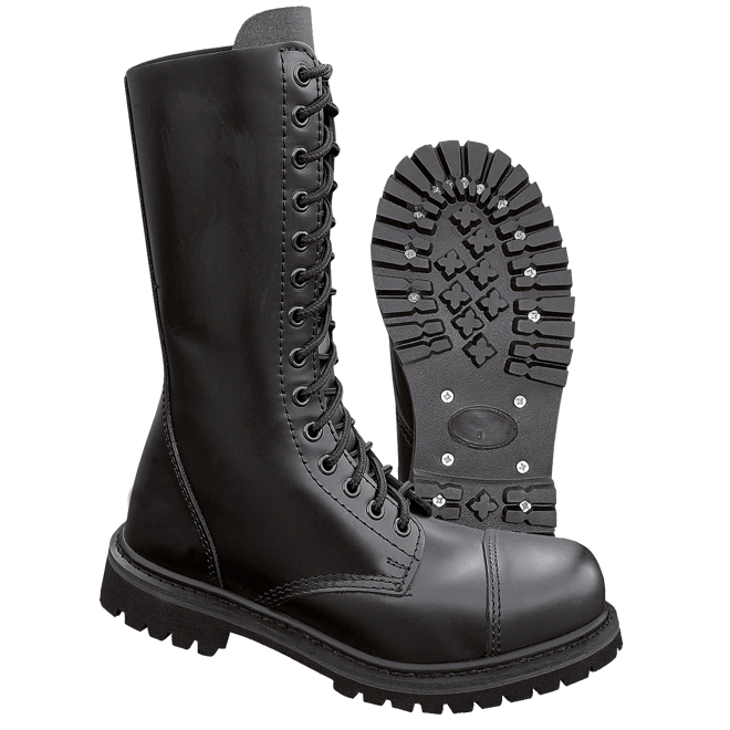 Boty Phantom jsou klasikou mezi koženou obuví se stylovým designem. Jsou vyrobeny ze 100% pevné kůže s hladkým povrchem a silnými švy. Zavazování je řešeno šněrovadlem. Vnitřek obuvi je bez podšívky. Špička je zpevněna ocelovou planžetou. Masivní podrážka je připevněna lepením a šrouby. - svršek ze 100 % přírodní kůže - ocelová špička - podrážka připevněná lepením a šrouby Barva: černá Materiál: vrchový materiál: 100 % hovězí kůže podrážka: 100 % syntetická pryž Hmotnost: 2275 g (vel. 10) Výška: 28 cm (vel. 10) Dodávané velikosti: 4-13 Výrobce: Brandit, Německo
