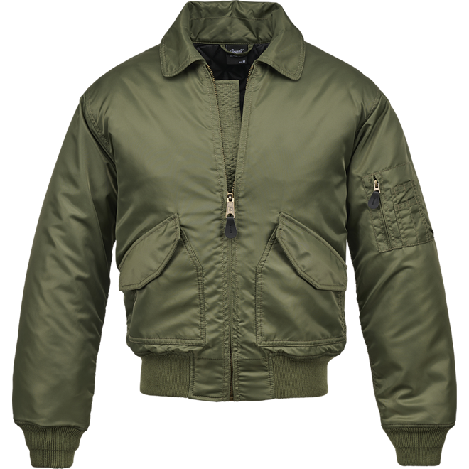 Letecká bunda do nepříznivého počasí Bunda CWU je dobře známým typem bundy pro piloty amerického letectva U.S. Airforce. Je to rovněž TA PRAVÁ bunda pro chladné a vlhké dny. Je zhotovená z vodoodpudivého materiálu odolného vůči větru. Zapínání zdrhovadlem je na vnitřní straně chráněno légou. Bunda je určena všem, kteří přesně vědí, co chtějí: zateplení s prošívanou podšívkou, hřejivé manžety z pružného žebrového úpletu na koncích rukávů a v pase, zesílené švy, velké přední kapsy s překryvnými patkami a límeček, jehož ohrnutím lze nouzově chránit partii krku. Materiál: vrchový materiál: 100 % nylon podšívka: 100 % polyester zateplení: 100 % polyester