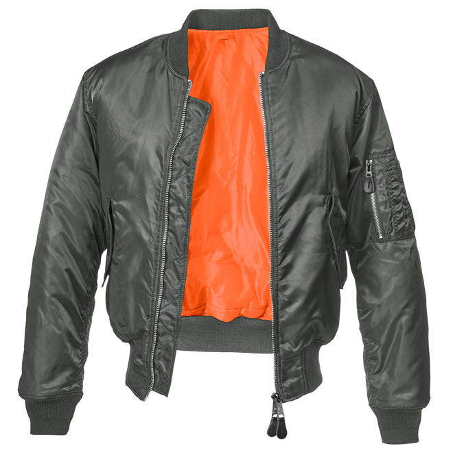 Světoznámá letecká bunda Bundy MA1 jsou praktickou součástí nejen armádního, ale v současné době i civilního oblečení. Bunda je zhotovená z pevného, dešti a větru odolného materiálu, takže dobře chrání nejen v chladném, ale i povětrnostně nepříznivém počasí. Na bocích na vnější straně se nacházejí dvě prostorné kapsy kryté tvarovanými patkami se spínáním na druky. Uvnitř jsou zhotoveny další dvě kapsy opět spínané druky. Na pravém rameni je pro bundy MA1 typická kombinovaná kapsa. Její spodní prostor je zavíraný bočním zdrhovadlem a poslouží např. pro zasunutí dokladů nebo menšího mobilního telefonu. Navrchu se nacházejí čtyři váčky pro uložení psacích potřeb. Zapínání bundy MA1 je řešeno pevným kovovým zdrhovadlem, které je na spodní straně kryté légou, aby se zabránilo průniku chladu. U krku, na koncích rukávů a v pase jsou našity elastické náplety. Neodmyslitelným rysem bund MA1 je možnost oboustranného použití. V případě potřeby lze bundu obléci naruby a její vnitřní signální oranžová podšívka poslouží ke zviditenění za šera při pohybu na nebezpečných místech, při práci nebo naopak pro usnadnění pátrání. V případě nouze lze takto bundu využít i k označení důležitého nebo nebezpečného místa kvůli orientaci. Materiál: vrchní: 100 % nylon vnitřní: 100 % polyester zateplení: 100 % polyester náplety: 69 % polyakryl, 31 % polyester Hmotnost: 960 g ( vel. L) Výrobce: Brandit, Německo Kód výrobce: 3149