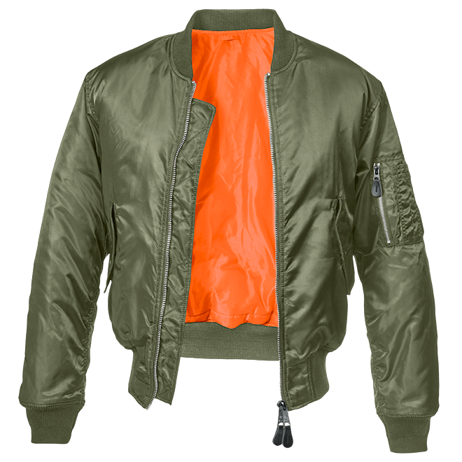 Světoznámá letecká bunda Bundy MA1 jsou praktickou součástí nejen armádního, ale v současné době i civilního oblečení. Bunda je zhotovená z pevného, dešti a větru odolného materiálu, takže dobře chrání nejen v chladném, ale i povětrnostně nepříznivém počasí. Na bocích na vnější straně se nacházejí dvě prostorné kapsy kryté tvarovanými patkami se spínáním na druky. Uvnitř jsou zhotoveny další dvě kapsy opět spínané druky. Na pravém rameni je pro bundy MA1 typická kombinovaná kapsa. Její spodní prostor je zavíraný bočním zdrhovadlem a poslouží např. pro zasunutí dokladů nebo menšího mobilního telefonu. Navrchu se nacházejí čtyři váčky pro uložení psacích potřeb. Zapínání bundy MA1 je řešeno pevným kovovým zdrhovadlem, které je na spodní straně kryté légou, aby se zabránilo průniku chladu. U krku, na koncích rukávů a v pase jsou našity elastické náplety. Neodmyslitelným rysem bund MA1 je možnost oboustranného použití. V případě potřeby lze bundu obléci naruby a její vnitřní signální oranžová podšívka poslouží ke zviditenění za šera při pohybu na nebezpečných místech, při práci nebo naopak pro usnadnění pátrání. V případě nouze lze takto bundu využít i k označení důležitého nebo nebezpečného místa kvůli orientaci. Materiál: vrchní: 100 % nylon vnitřní: 100 % polyester zateplení: 100 % polyester náplety: 69 % polyakryl, 31 % polyester Hmotnost: 960 g ( vel. L) Výrobce: Brandit, Německo Kód výrobce: 3149