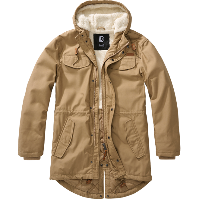 Ani bunda, ani kabát, elegantní zateplená parka Marsh Lake. Módní kousek do města inspirovaný military stylem. kapuce zateplená na omak příjemnou umělou kožešinou kapuce je spojená s vysokým límcem, při zapnutí je tak krk chráněn před povětrnostními vlivy zateplení umělou kožešinou v horní části do pasu část od pasu dolů je s lehčím prošívaným zateplením stahovací tkanice na kapuci, v pase (na vnitřní straně parky) a na dolním okraji, tkanice jsou ukončeny dekorativní koženou průvlečkou fishtail (dolní okraj parky je vzadu rozdělen do dvou šosů s druky) zapínání na zip, jezdec ukončený koženým tahačem, zip je kryt légou zapínanou na druky dvě objemné kapsy s klopami vpředu,zapínání na druk dvě kapsy s klopami na hrudi, zapínání na druk jedna náprsní kapsa z rubové strany rukávy zakončené na vnitřní straně úpletem zajišťují tepelný komfort na hrudi malá elegantní nášivka s vytlačeným logem výrobce Materiál: 20 % bavlna, 80 % polyester, zateplení 100% polyester Hmotnost: 1500 g (velikost XL) Výrobce: Brandit, Německo Kód výrobce: 9442