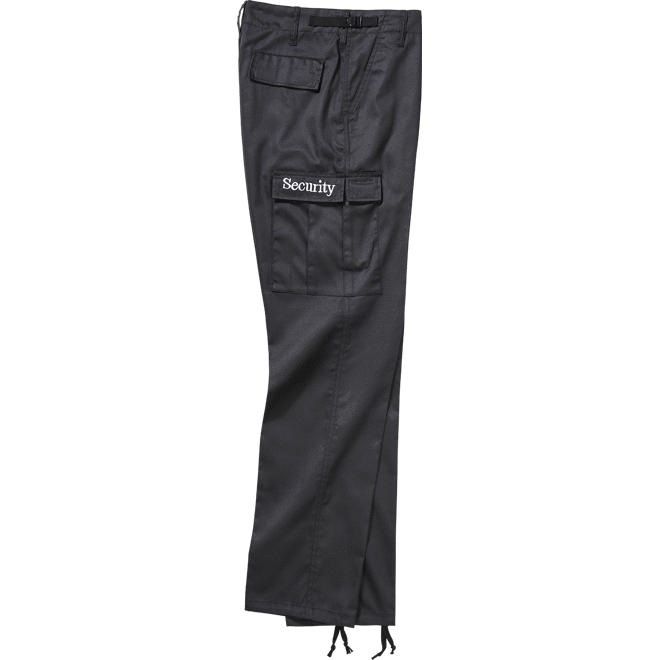 US Ranger pants - edice SECURITY Nestárnoucí praktický model kalhot určených pro profesní použití nebo volný čas. Kalhoty US Ranger střihově vycházejí z osvědčené bojové uniformy US Army BDU (Battle Dress Uniform). Zachovávají šikmé přední kapsy, dvě vakové kapsy na stehnech a dvě zadní kapsy. Prostoru pro uložení veškerých potřebných věcí poskytují tedy dostatek. Stehenní a zadní kapsy jsou navíc kryté klopami se skrytými knoflíky, takže je jejich obsah dobře chráněn proti vypadnutí při pohybu a činnosti. Oproti BDU nemají kalhoty US Ranger zesílení materiálu v oblasti sedu a kolen. Mírně se tím snížila odolnost při silném namáhání v těchto oblastech, ale zvýšila se pohodlnost při běžném nošení. Vzhledem na pevný směsový materiál, ze kterého jsou zhotoveny, však stále poskytují dostatečnou trvanlivost. 2 boční vakové kapsy možnost úpravy obvodu v pase stahovací tkanice v okraji nohavic pevný směsový materiál zapínání na knoflíky potisk SECURITY Materiál: 80 % polyester, 20 % bavlna Výrobce: Brandit, Německo Kód výrobce: 9208