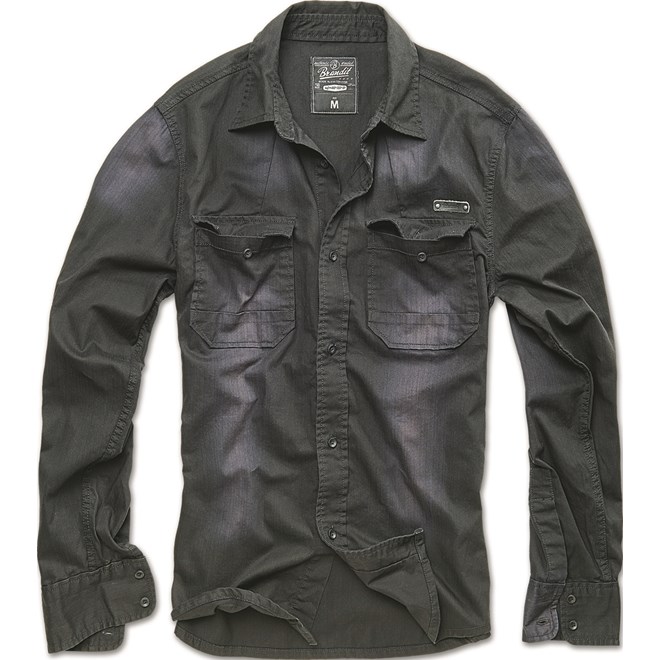 Bavlněná košile ve vintage stylu s efektem silného oprání Rovný, volný střih, prostorné rukávy. Na hrudi dvě symetrické kapsy zakryté klopami na knoflíky. Dolní okraje kapes a klopy mají výrazně zkosené rohy. Zapínání na knoflíky. Materiál: 100 % bavlna Hmotnost: 430 g (vel. L) Výrobce: Brandit, Německo