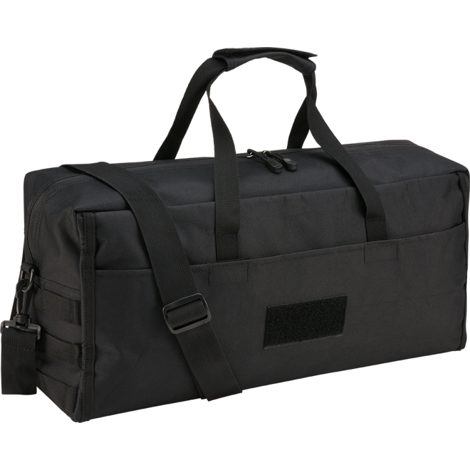 Taška / brašna na nářadí nebo jiné nezbytnosti do dílny, na chatu, chalupu nebo do domácnosti. zhotoveno z robustního 600D polyesteru zapínání dvoucestným zipem s tahačem dvě ucha pro přenášení, možnost spojení pomocí chlopně se suchým zipem vnitřní box bez členění, na stěnách pružné smyčky systému molle - 20 oček na vnější straně boxu dvě kapsy - jedna na zip, jedna na suchý zip velcro panel 10 cm × 5 cm zpevněné dno popruh přes rameno, délkově nastavitelný, odnímatelný, zavěšení na plastové D-kroužky Rozměry: výška 23 cm × šířka 50 cm × hloubka 16 cm Hmotnost: 740 g (dodáváno bez obsahu) Objem: 18 litrů Materiál: 100 % polyester povrstvený polychloridem, pružné smyčky - 80 % polyster, 20 % elastodien Výrobce: Brandit, Německo Kód výrobce: 8085