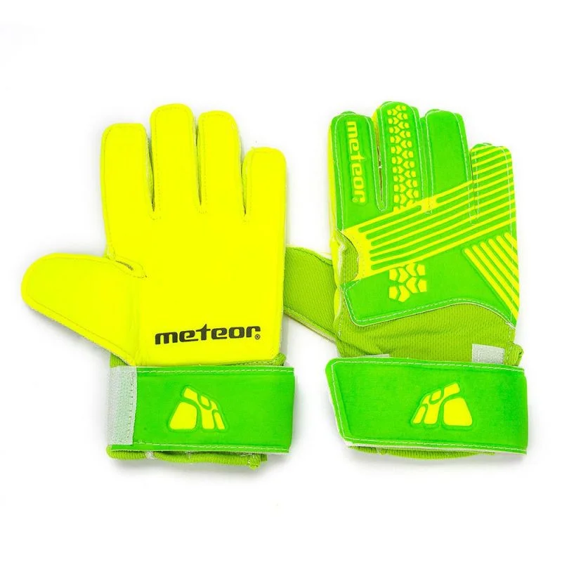 Brankářské rukavice Meteor Catch 03608-03613 Brankářské rukavice Meteor jsou určeny pro trénink a rekreační zápasy. Vyznačují se vysokou kvalitou zpracování. Vyznačují se také dobrým tlumením nárazů a vysokou odolností proti oděru. Byly navrženy a vyrobeny tak, aby chránily vnitřní stranu brankářovy ruky při chytání míčů. Zajišťují vynikající přilnavost, odraz a pěst za všech povětrnostních podmínek. Dodatečná výztuha, působící jako blokáda, chrání prsty brankáře před zraněním. Rukavice mají široký pásek na suchý zip, který dále zpevňuje zápěstí brankáře. Technické údaje: Rukavice jsou vybaveny ochranným krytem, který je součástí balení: Model: CATCH Materiál: PU Velikost a odpovídající šířka rukavic v zápěstí: #4 - 5 cm #5 - 6,4 cm #6 - 7,6 cm #7 - 8,9 cm #8 - 10,2 cm #9 - 11,4 cm. Materiál: materiál: polyuretan Barva: polyuretanová: zelená