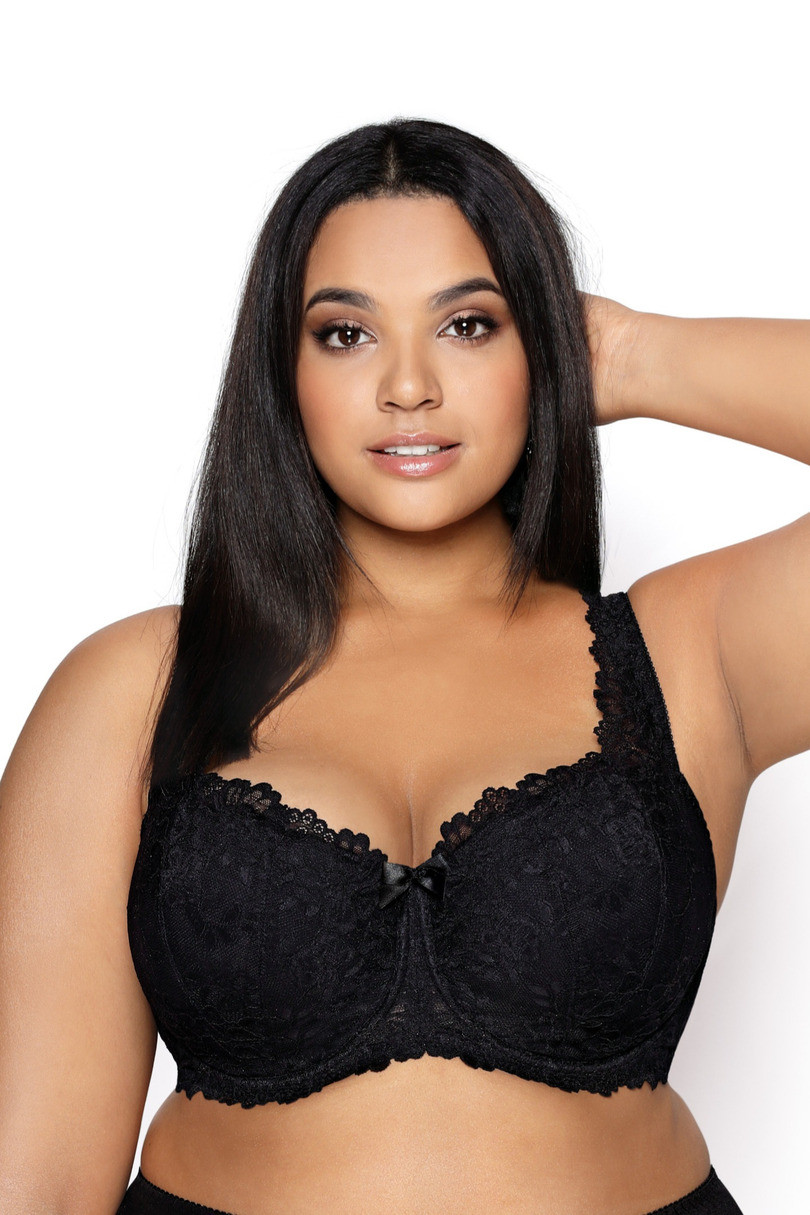 Vyztužená dámská podprsenka typu semi-soft. Krajka s květinovým motivem, vnitřní strana košíčků podšitá bavlnou, boky krajkové. Nastavitelná ramínka, nelze je odepnout. Model ideálně nadnáší a udržuje poprsí. Složení: 44 % polyamid, 17 % polyester, 17 % bavlna, 17 % polyuretan, 5 % elastan. Usztywniany biustonosz typu semi soft. Koronka o kwiatowym motywie, wewnętrzna strona miski podszyta bawełną, boczki koronkowe, regulowane ramiączka, nieodpinane. Model idealnie unosi i podtrzymuje biust. Skład: 44% poliamid, 17% poliester, 17% bawełna, 17% poliuretan, 5% elastan.