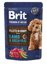 Brit Premium by Nature Dog Fillets in Gravy with Lamb & Green Peas pro psy, jehněčí filetky v omáčce s hráškem. Masová kapsička vhodná pro všechna plemena.