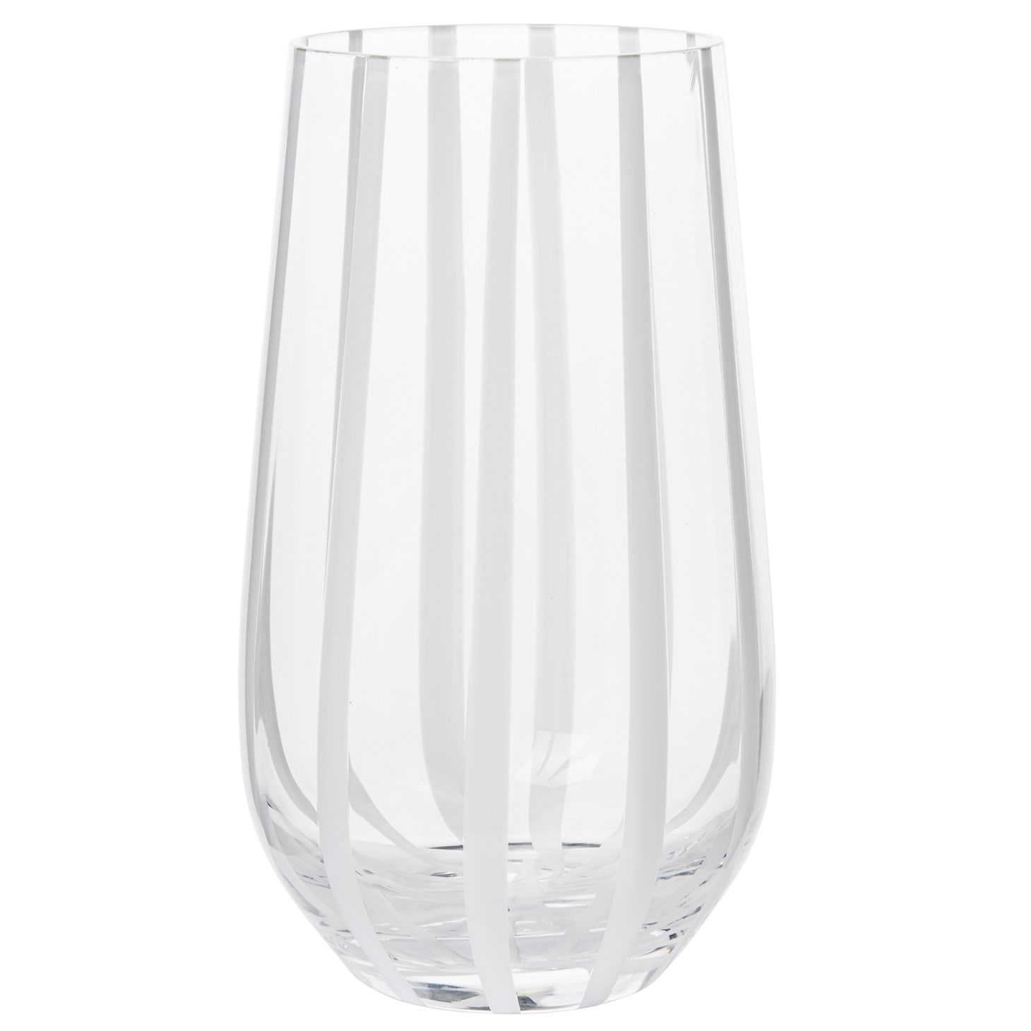 Sklenička je vyrobená z tenkého čirého skla, v němž jsou mléčně bílé proužky. Sklo je ručně foukané s ručně dotvářenými detaily, jde proto o precizní práci na každém jednotlivém kousku, který může zdobit i váš prostřený stůl, ať už při zvláštní příležitosti nebo běžné večeři. objem 550 ml / průměr 8,5 cm / výška 15 cm Vyrobeno z ručně foukaného skla, proto se ve skle mohou objevit drobné bublinky a nedokonalosti.
