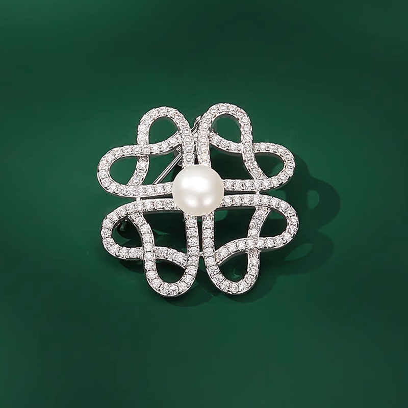 Představujeme vám brož ve tvaru čtyřlístku, jejíž jednotlivé lístky tvoří elegantně proplétaná srdíčka. Každý detail je zdoben precizně vsazenými třpytivými zirkony, které vytvářejí dojem exkluzivity a noblesy. Uprostřed brože je vsazena jemná perla, která celému šperku dodává punc výjimečnosti.Tato elegantní brož nejenže symbolizuje štěstí a lásku, ale díky originálnímu designu, který propojuje motiv nekonečna se srdíčky, představuje také věčnost a nekonečnou náklonnost. Precizní provedení šperku v sobě spojuje klasickou eleganci s moderním pojetím, díky čemuž se brož snadno stane ozdobou každého outfitu.Brož můžete připnout na klopu saka, na šaty či kabátek a dodat tak svému vzhledu neotřelý a elegantní detail. Díky jemné a sofistikované podobě je ideální na slavnostní příležitosti, ale vynikne také při každodenním nošení do kanceláře nebo na setkání s přáteli. 💡Tip: Tato brož je perfektním dárkem k výročí nebo narozeninám, který vaší blízké osobě připomene, jak moc vám na ní záleží.