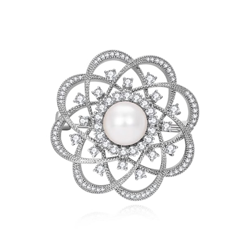 Luxusní brož s centrální bílou perlou okouzlí svým jemným designem a sofistikovaným zpracováním. Bohatě zdobené linie zirkonů vytvářejí nádherný ornamentální vzor, který zaujme na první pohled.Tento šperk je skvělým doplňkem nejen na večerní róby, ale také na elegantní sako nebo šaty, kterým dodá nádech noblesy a osobitosti. Díky univerzálnímu tónu bílé a stříbrné je snadno kombinovatelný s různými barvami a styly.Perfektně se hodí jako dárek pro ženu, která ocení výjimečné detaily a luxusní provedení. Brož podtrhne ženský půvab a dodá outfitu špetku třpytivého kouzla. 💡Tip: Brož s perlou uprostřed symbolizuje čistotu, eleganci a ženskou sílu. Noste ji jako talisman sebevědomí a nadčasového šarmu.