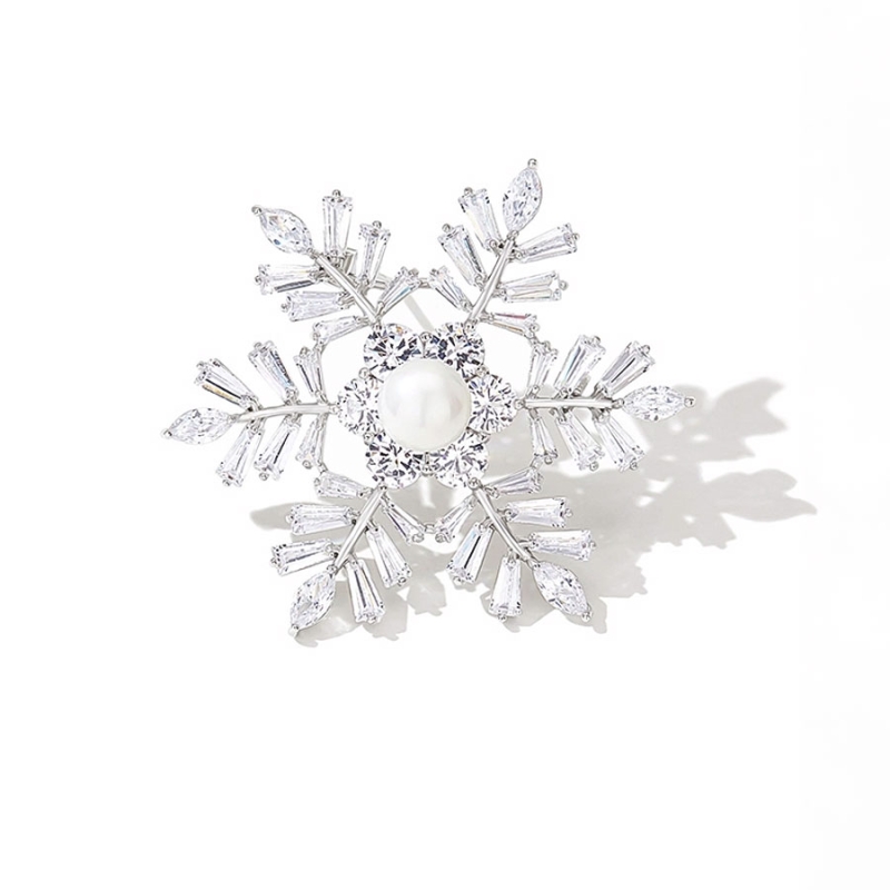 Luxusní brož ve tvaru sněhové vločky oslní svým propracovaným designem a zářivými kameny. Dominantou je středová sladkovodní perla, která dodává celku jemnost a noblesu.Tento šperk vynikne na tmavých i světlých outfitech a dodá jim slavnostní nádech. Perfektní volba pro zimní plesy, večírky nebo elegantní firemní akce.Precizní zpracování a kombinace perly se zirkony zaručují, že tato brož zůstane ve vašem šatníku nadčasovým klenotem. 💡Tip: Doporučujeme brož připnout nejen na klopu saka, ale i na zimní kabát nebo pletený svetr – krásně oživí i zimní outfit a podtrhne váš styl.