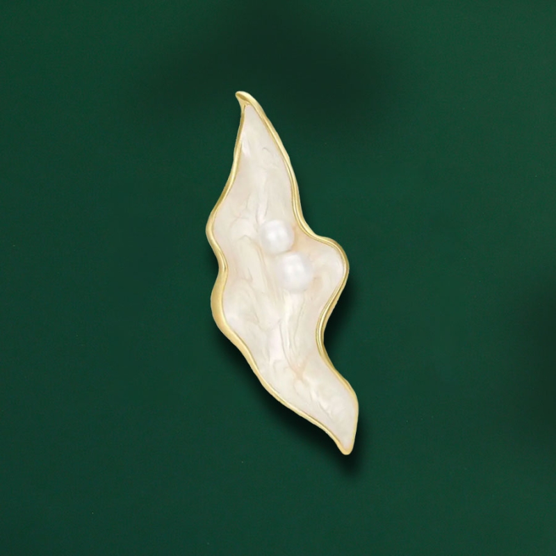 Tato brož představuje unikátní spojení elegance a uměleckého designu, které dodává každému outfitu nádech sofistikovanosti. Její organický tvar inspirovaný přírodními formami je doplněný o něžné perly, jež jsou mistrovsky umístěny tak, aby přirozeně splynuly s tvarem brože. Zlatý lem jemně obklopuje smaltovaný povrch s perleťovým efektem, čímž zvýrazňuje jeho přírodní lesk a texturu. Brož má nejen estetickou funkci, ale také symbolický význam. Perly, tradičně spojovány s čistotou a moudrostí, jsou zasazeny do brože jako skryté poklady, připomínající nečekané a vzácné momenty v životě. Její jedinečný design se hodí pro širokou škálu příležitostí, od každodenního nošení až po významné společenské události. Každý exemplář této brože je výrazem jedinečného umění a řemeslné dovednosti, což ji činí ideálním dárkem pro milovníky neotřelé módy nebo jako významný doplněk pro zvláštní okamžiky. S touto broží není krása jen viděná, ale také cítěná.
