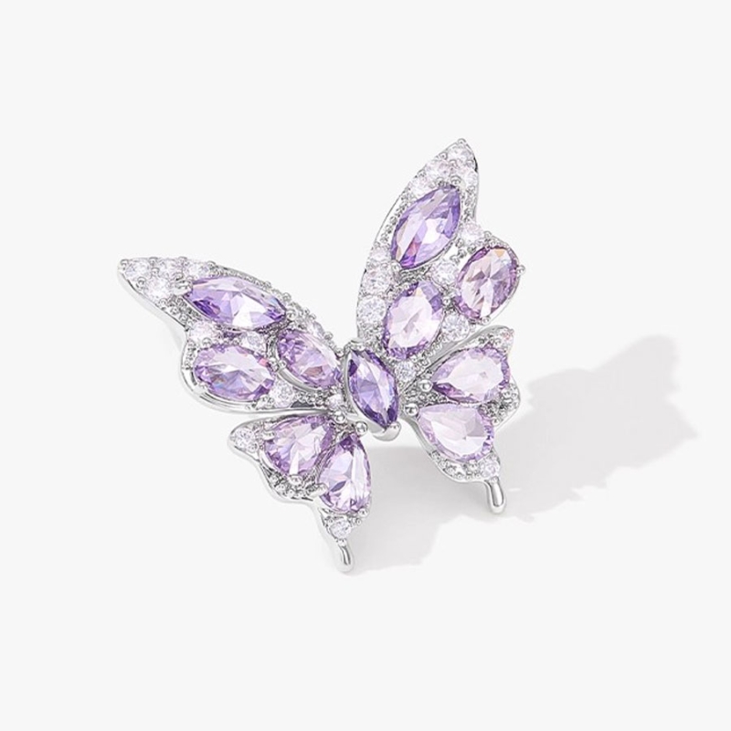 Tato elegantní brož ve tvaru motýla upoutá pozornost na první pohled svou jemností a pečlivým zpracováním. Křídla jsou osazena broušenými zirkony v odstínech světlé a fialové růžové, které se třpytí při každém pohybu a vytvářejí dojem lehkosti a křehké krásy. Symetrický tvar motýla působí harmonicky a přirozeně.Stříbrný tón kovu dokonale ladí s chladnými barvami kamenů a podtrhuje jejich zář. Centrální část šperku tvoří větší fialové krystaly, orámované drobnými čirými zirkony, které připomínají kapky rosy na motýlích křídlech. Výsledný efekt je jemný, elegantní a přitom výrazný.Tato brož je ideální volbou pro slavnostní chvíle, večerní setkání, ale i jako sofistikovaný doplněk do práce. Vynikne na saku, halence i šatech a snadno se stane oblíbeným šperkem, po kterém sáhnete, kdykoliv budete chtít podtrhnout svůj styl. 💡 Tip: Fialové tóny brože nejlépe vyniknou na tmavých nebo neutrálních odstínech – zkuste ji připnout k černému kabátu, šedému saku nebo smetanové halence.