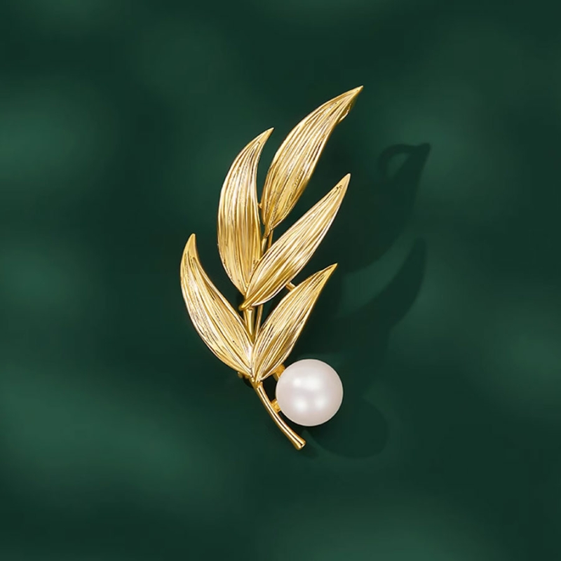 Elegantní brož ve tvaru větvičky s jemně propracovanými lístky zlaté barvy představuje dokonalé spojení jednoduchosti a noblesy. Design doplňuje hladká shell perla umístěná u spodní části větvičky, která celému šperku dodává sofistikovaný a čistý vzhled.Tento šperk se nese v duchu minimalismu s důrazem na precizní detaily a harmonii tvarů. Lesk perly v kombinaci se zlatým povrchem vytváří nadčasový doplněk, který se hodí jak ke slavnostním příležitostem, tak i pro každodenní nošení, kdy chcete svému outfitu dodat jemný akcent.Brož krásně vynikne na klopě saka, na halence, ale i na šatech nebo jemném svetru. Její nadčasový design se snadno kombinuje a dodává každému modelu pocit elegance a ženské lehkosti. 💡Tip: Tato brož skvěle doladí minimalistické outfity v přírodních tónech. Zkuste ji připnout na béžový kabát, krémovou halenku nebo pastelově růžové šaty pro jemně ženský look.
