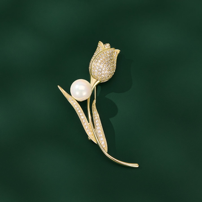Tato elegantní brož ve tvaru zlatého tulipánu s perlovým detailem je ztělesněním ženské něhy, krásy a rafinovanosti. Precizně zpracovaný květ tulipánu je zdobený jemnými zirkony, které dodávají celému šperku jemný třpyt, zatímco perla zasazená do stonku symbolizuje čistotu a půvab.Zlatá povrchová úprava v kombinaci s bílou perlou vytváří nadčasový a velmi ženský vzhled. Tento šperk se skvěle hodí ke slavnostním i formálním příležitostem – vynikne na tmavém saku, kabátu či večerních šatech, kde působí jako decentní, ale výrazný prvek celkového outfitu.Kombinace tulipánu a perly je vizuálním i emočním vyjádřením úcty, lásky a elegance. Brož je tak nejen krásným módním doplňkem, ale i silným symbolem – ideální volba pro každého, kdo hledá výjimečný dárek pro ženu, na které mu záleží. 💡 Tip: Tuto brož doporučujeme jako luxusní dárek ke Dni matek, pro učitelku jako poděkování, nebo k životnímu jubileu. V kombinaci s dárkovou krabičkou vytvoříte nezapomenutelný a esteticky silný moment.