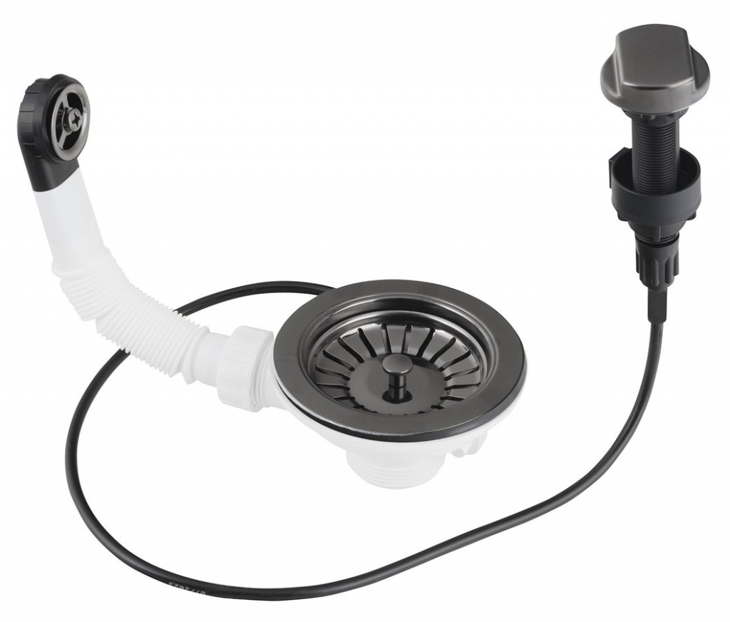 Bruckner - Dřezová výpust 6/4", s přepadem a ovládáním, nerez/gun metal 155.122.6