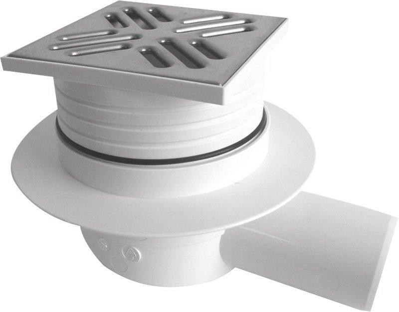 Bruckner - Podlahová vpust 105x105 boční, DN50, mřížka nerez lesk 183.018.0