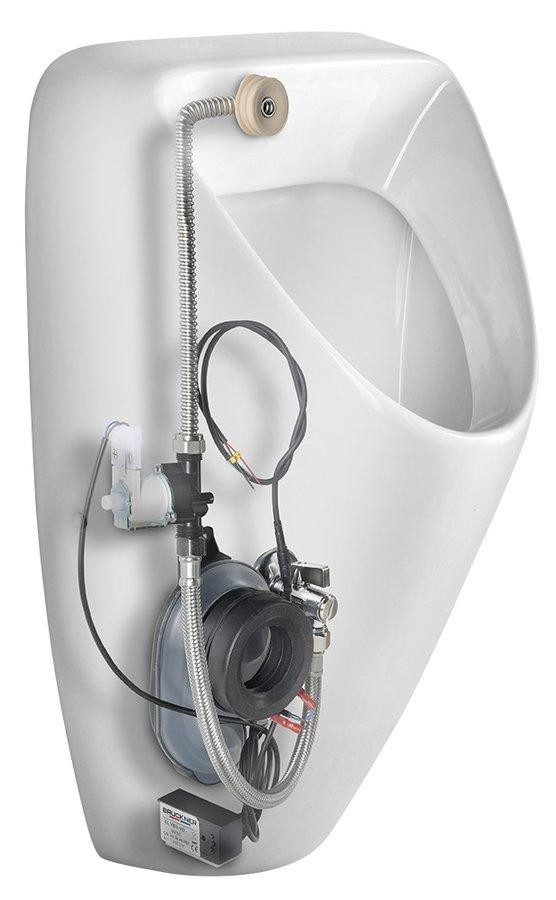 Urinál s integrovaným senzorovým splachovačem splňuje požadavky anti vandal a je určen všude tam, kde je požadován uživatelský komfort při maximální úspoře vody.Parametry: Vstup vody: G1/2" Napájecí napětí: 6V DC Zdroj napětí: síťový zdroj 121.762.1 nebo lithium baterie CR-P2 Čas splachování: 4s za 14s po použití Hygienický proplach každých 12h po posledním sepnutí Tlak vody: 1-10 Bar Průtok vody 17l/min při tlaku 3 Bar Intenzitu lze měnit pomocí vstupního ventilu Teplota vody: max...