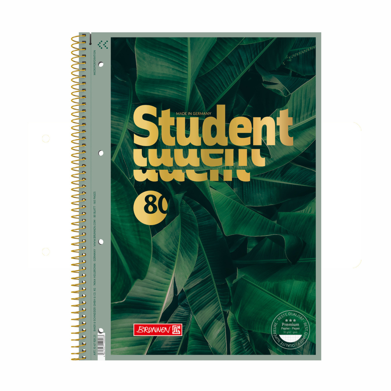 Kroužkový sešit obsahuje 80 listů, 160 stran, kvalitní papír o gramáži 90 g/m2, který se nepropisuje. Mikroperforace pro snadné vytržení listu, děrovaný pro možnost založení do šanonu. Desky s motivem džungle se zlatou ražbou. Vyrobeno v Německu.