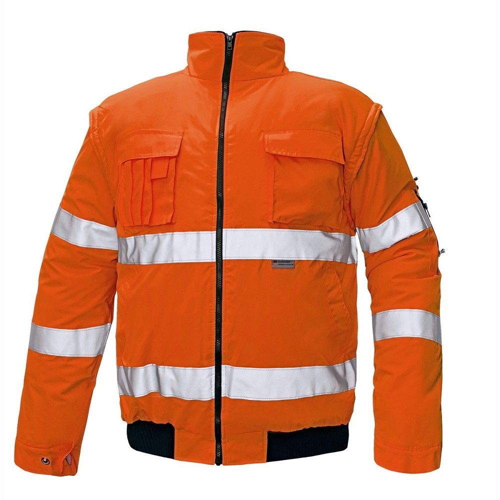 Bunda Hi-Vis CLOVELLY PILOT 2v1 reflexní odepínatelné rukávy oranžová • Hi-Vis bunda 2 v 1 s reflexními pruhy • odepínatelné rukávy a samostatně nositelná vesta • kapuce integrovaná v límci • podlepené švy • reflexní pásky 3M • voděodolnost tř. 3 dle normy EN 343 a paropropustnost tř. 1 dle normy • Vlastnosti • 2in1 bunda • voděodolné zipy • nepromokavý • prodyšný • větruodolný • reflexní doplňky • Velikost: | XS | S | M | L | XL | XXL | 3XL| 4XL| 5XL • Materiál: 100 % polyester • Barva: oranžová