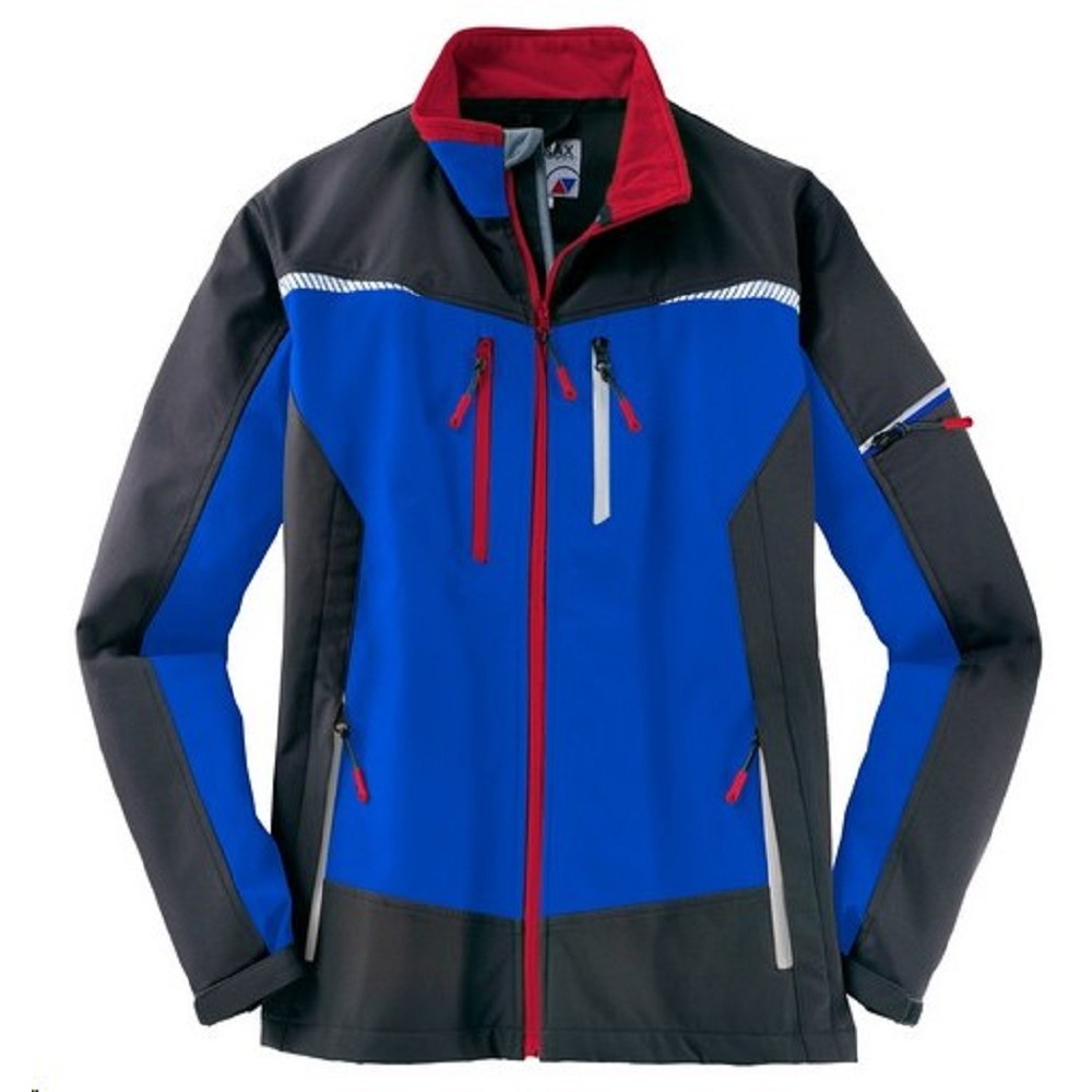 Bunda softshellová 61393, dvoubarevná na zip, reflexní doplňky, královská modrá/černá - Dvoubarevná softshellová bunda - reflexní prvky - nepromokavost 8000mm - prodyšná - Atraktivní design - červené zipy a límec - Velikosti : S-3XL