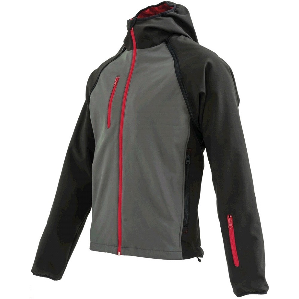Vodotěsná a prodyšná softshellová bunda s kapucí. Raglánové odepínací rukávy, čímž se z bundy stává praktická vesta pro mírnější počasí. Má čtyři vnější a dvě velké vnitřní kapsy. Vodoodolné uzávěry proti vodě u rukávů. Složení: Softshell (polyester/spandex) s membránou. Vodotěsnost w/w 8000 mm a odolnost proti větru a prodyšnost 800 MVP. Polyesterová podšívka. Velikosti: S-M-L-XL-XXL-3XL-4XL Barva: Šedá/černá/červené zipy